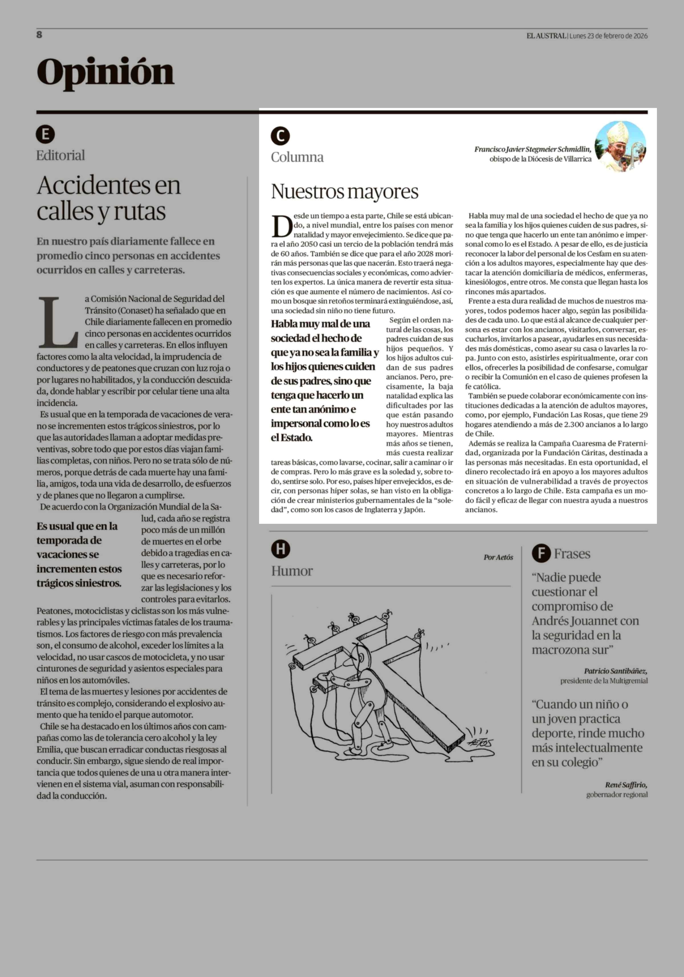 Columnas de Opinión: Nuestros mayores 23-02-2026 El Austral de la Araucanía |