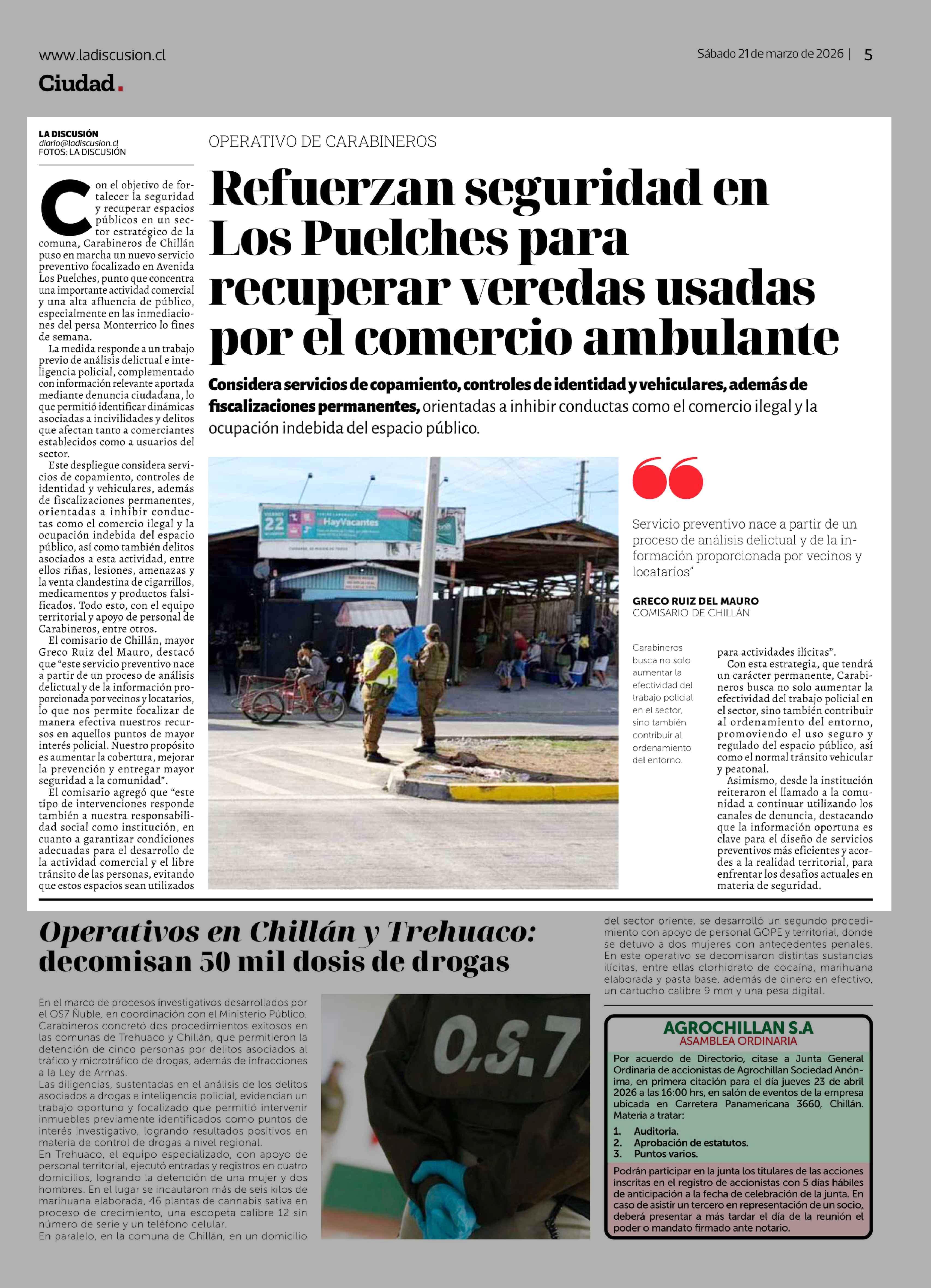Fecha: 21-03-2026 Sector: Noticia general Región: Región del Ñuble
