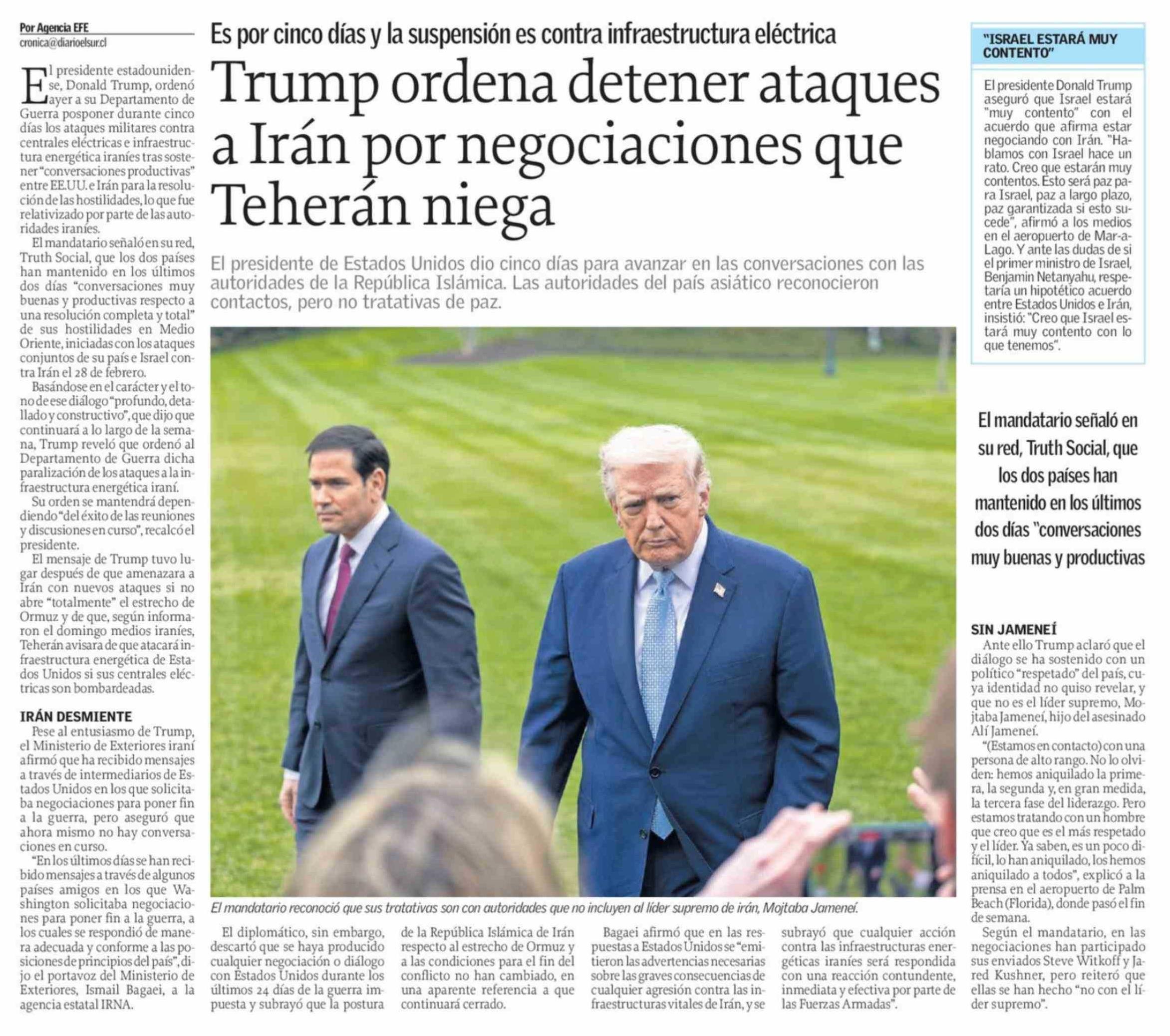 Título: Trump ordena detener ataques a Irán por negociaciones que Teherán niega