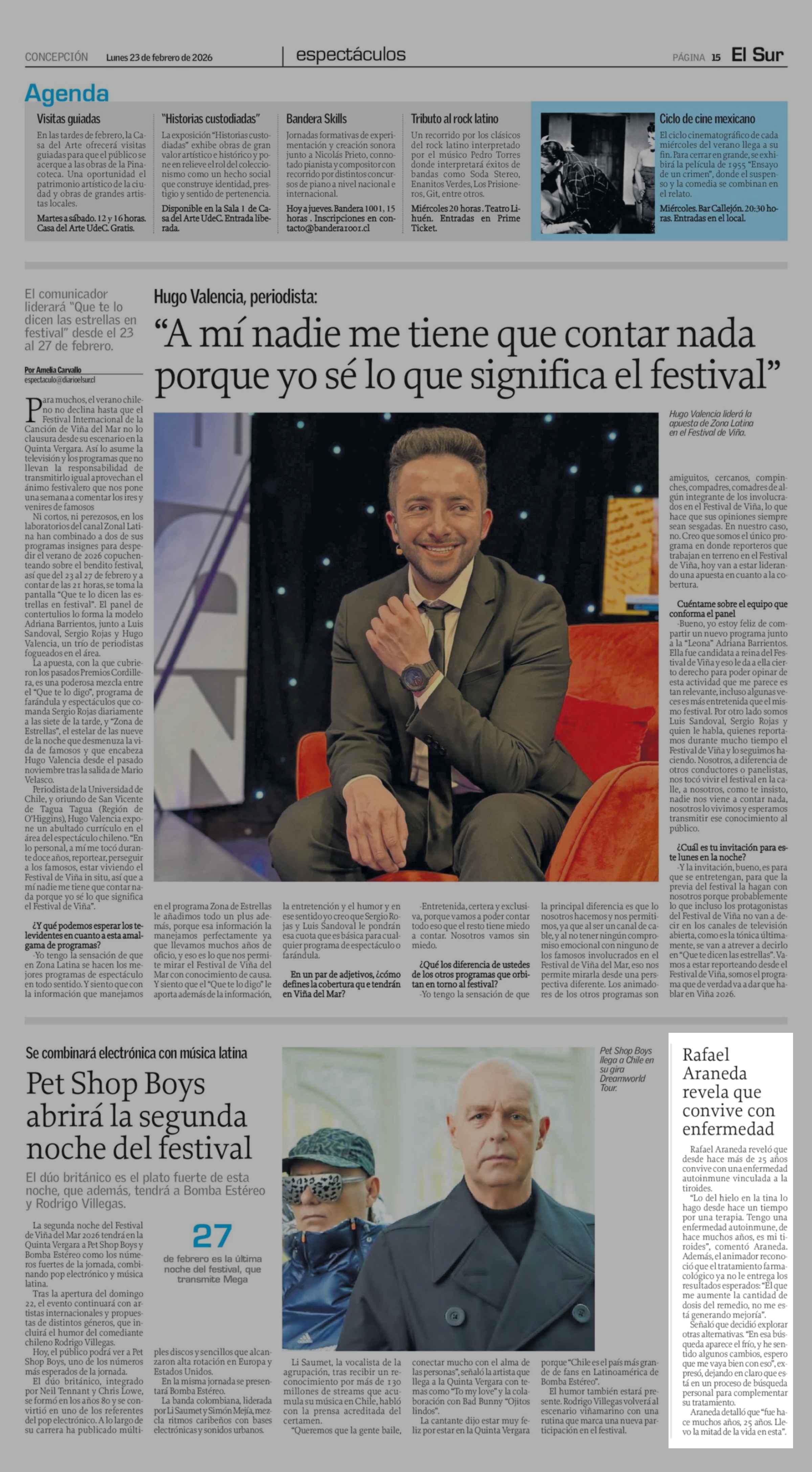 Rafael Araneda revela que convive con enfermedad 23-02-2026 El Sur |