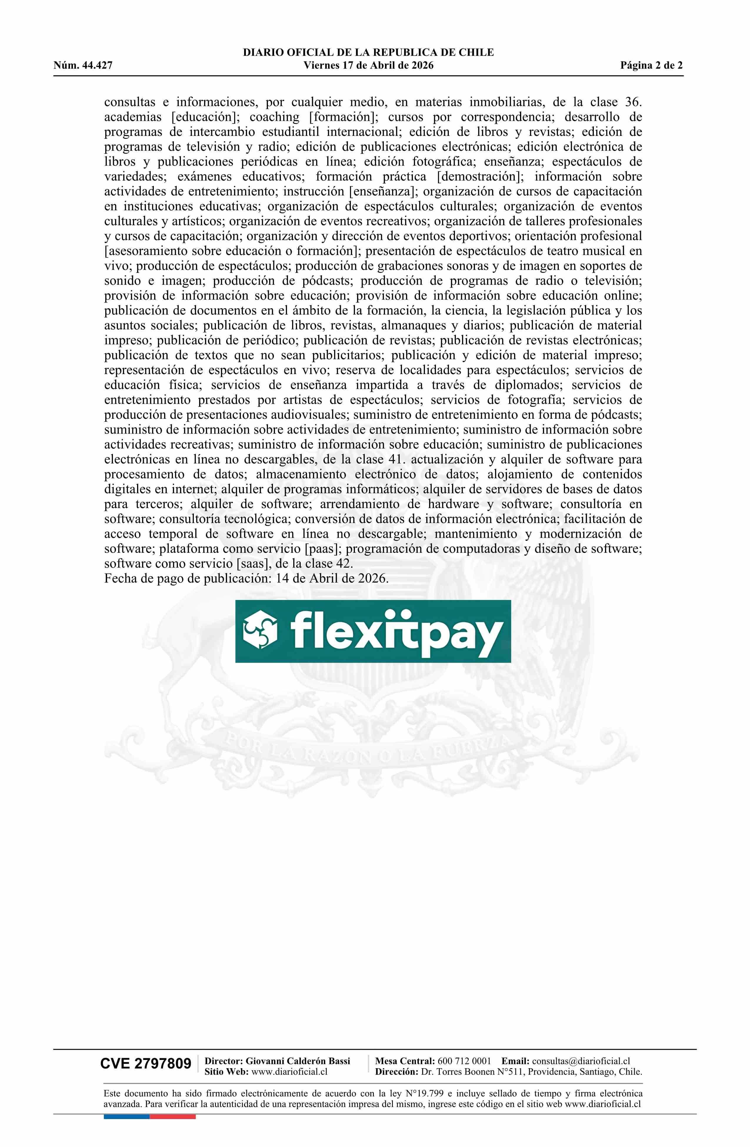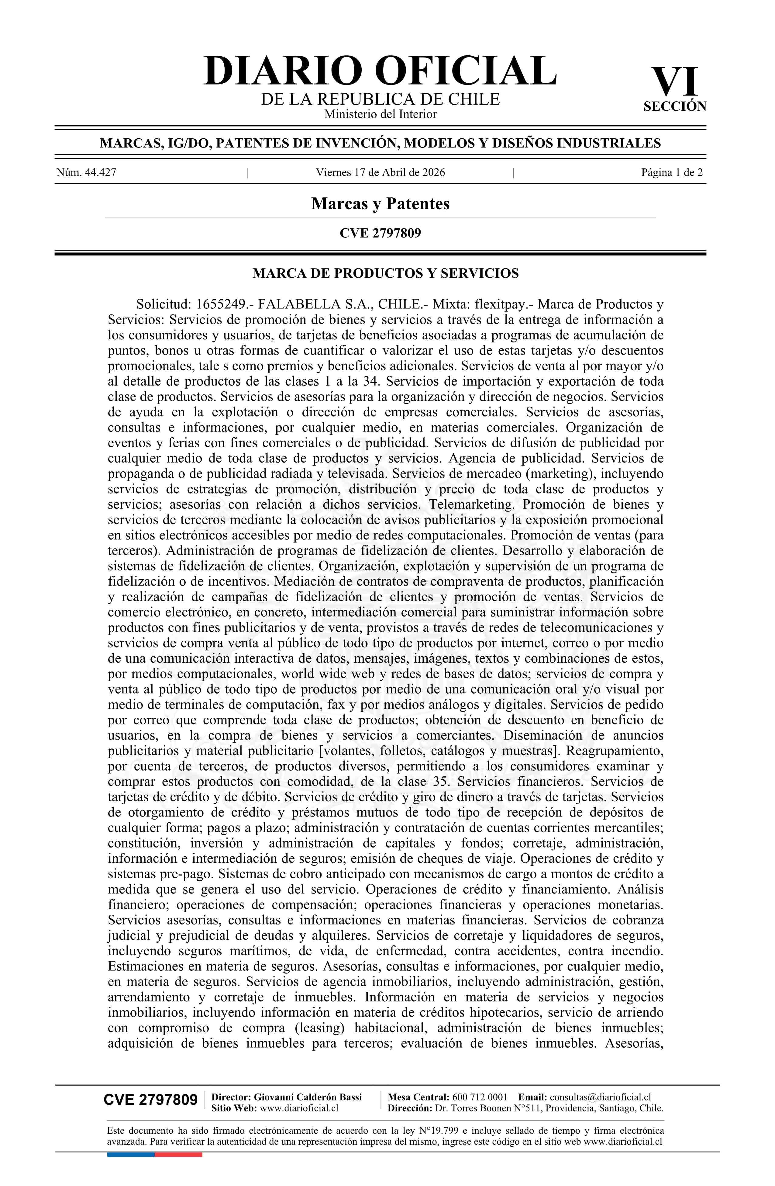 Solicitud número 1655249.- flexitpay 17-04-2026 Diario Oficial Edición Electrónica |