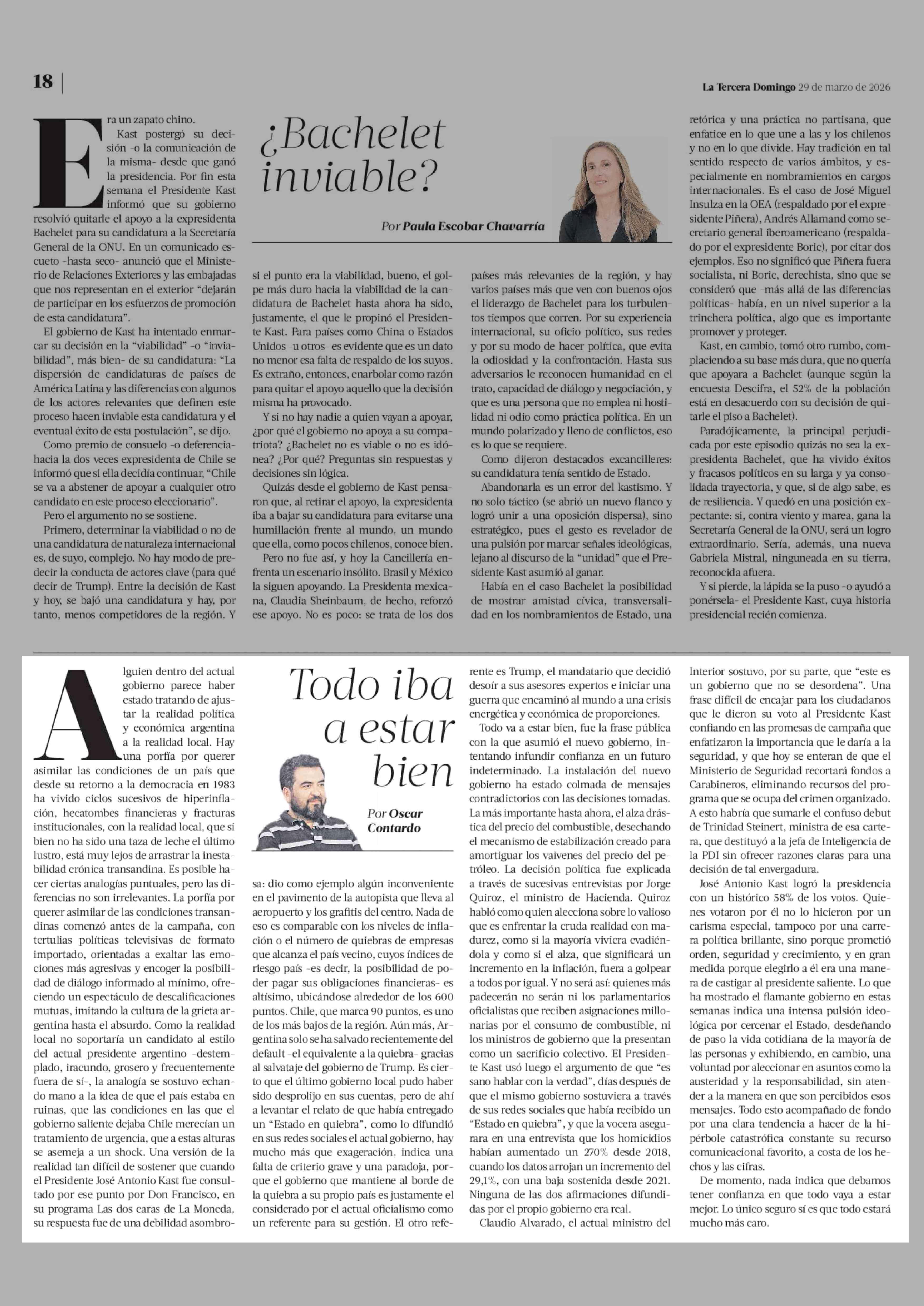 Columnas de Opinión: Todo iba a estar bien 29-03-2026 La Tercera |