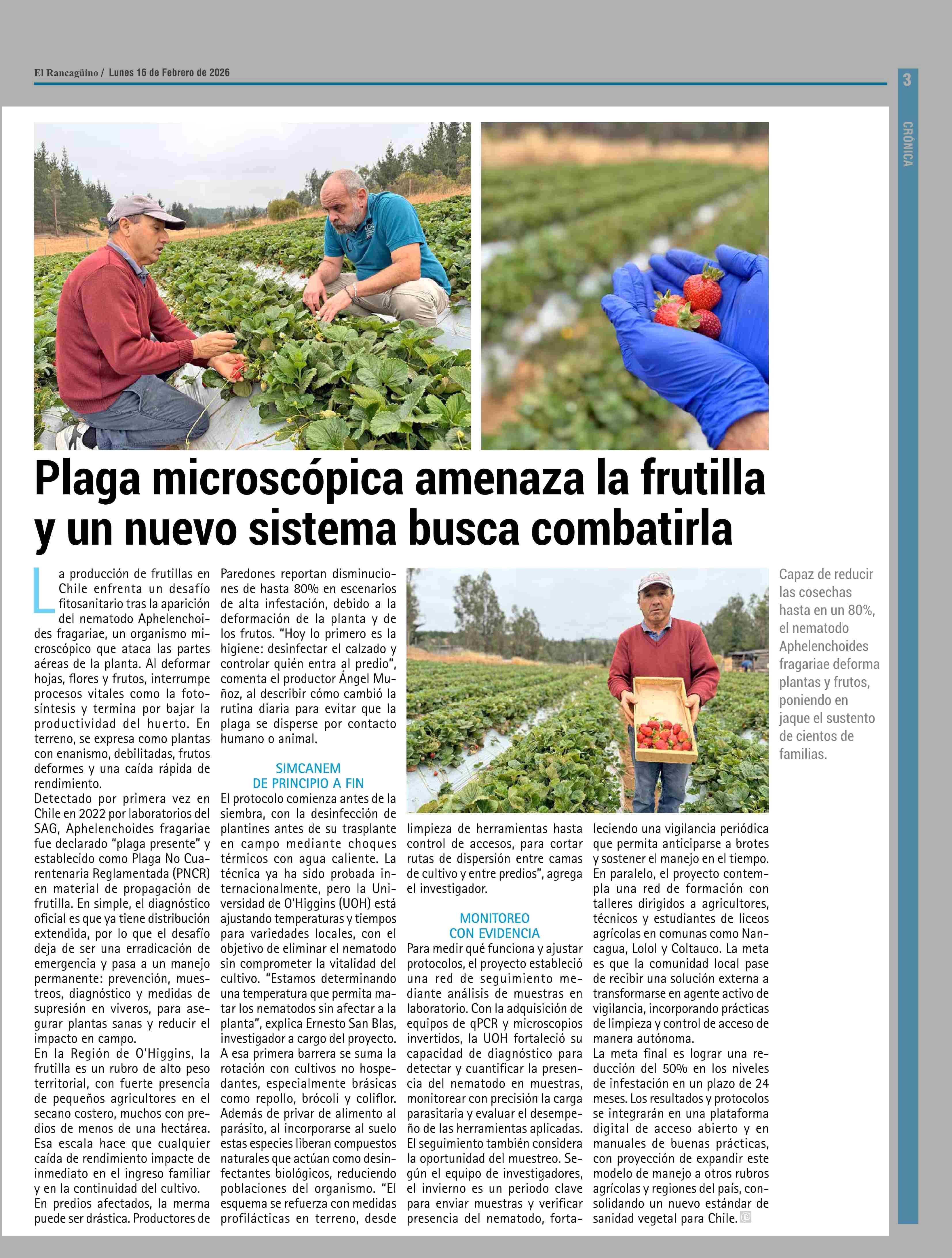 Título: Plaga microscópica amenaza la frutilla y un nuevo sistema busca combatirla