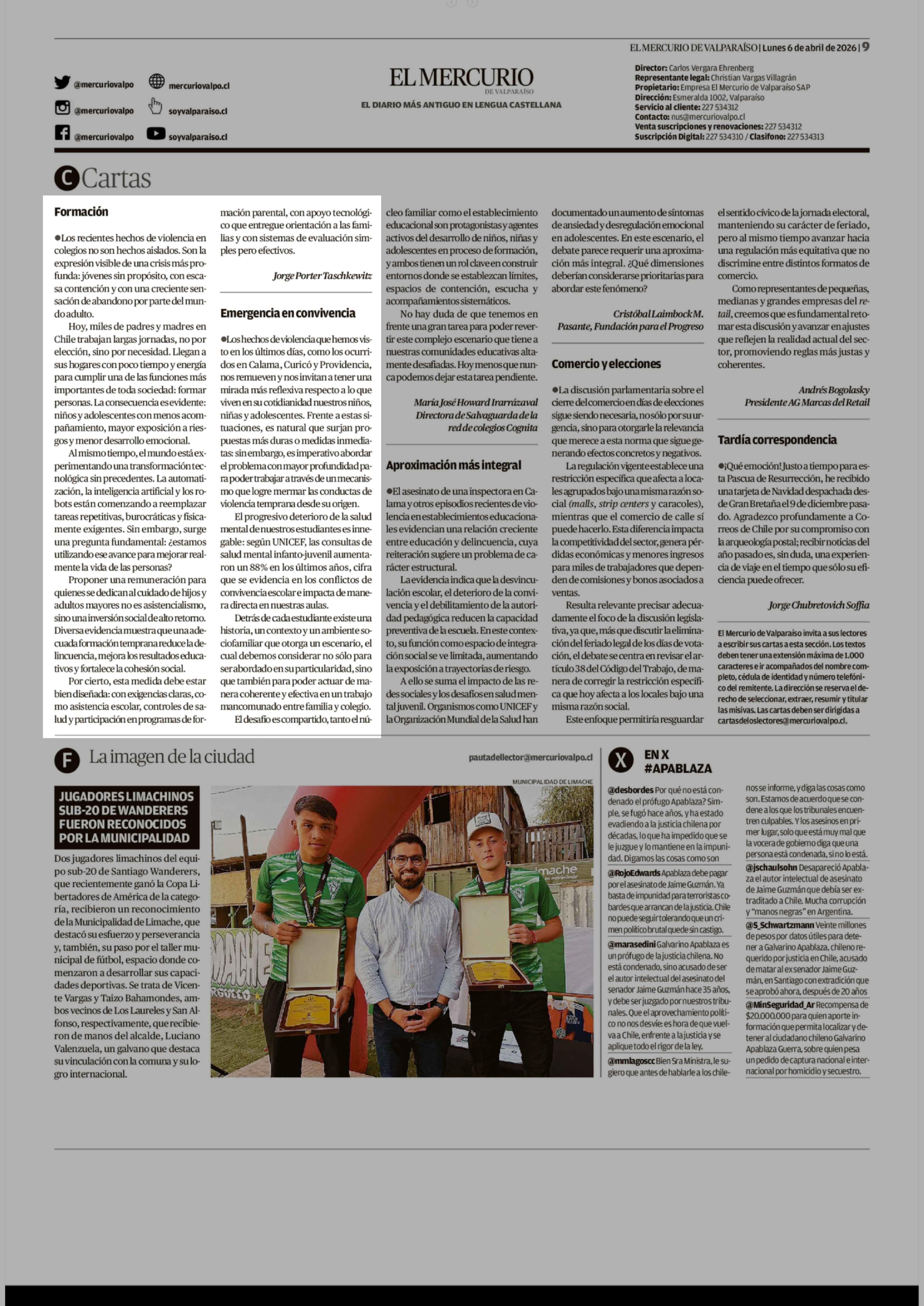 Cartas: Formación 06-04-2026 El Mercurio de Valparaíso |