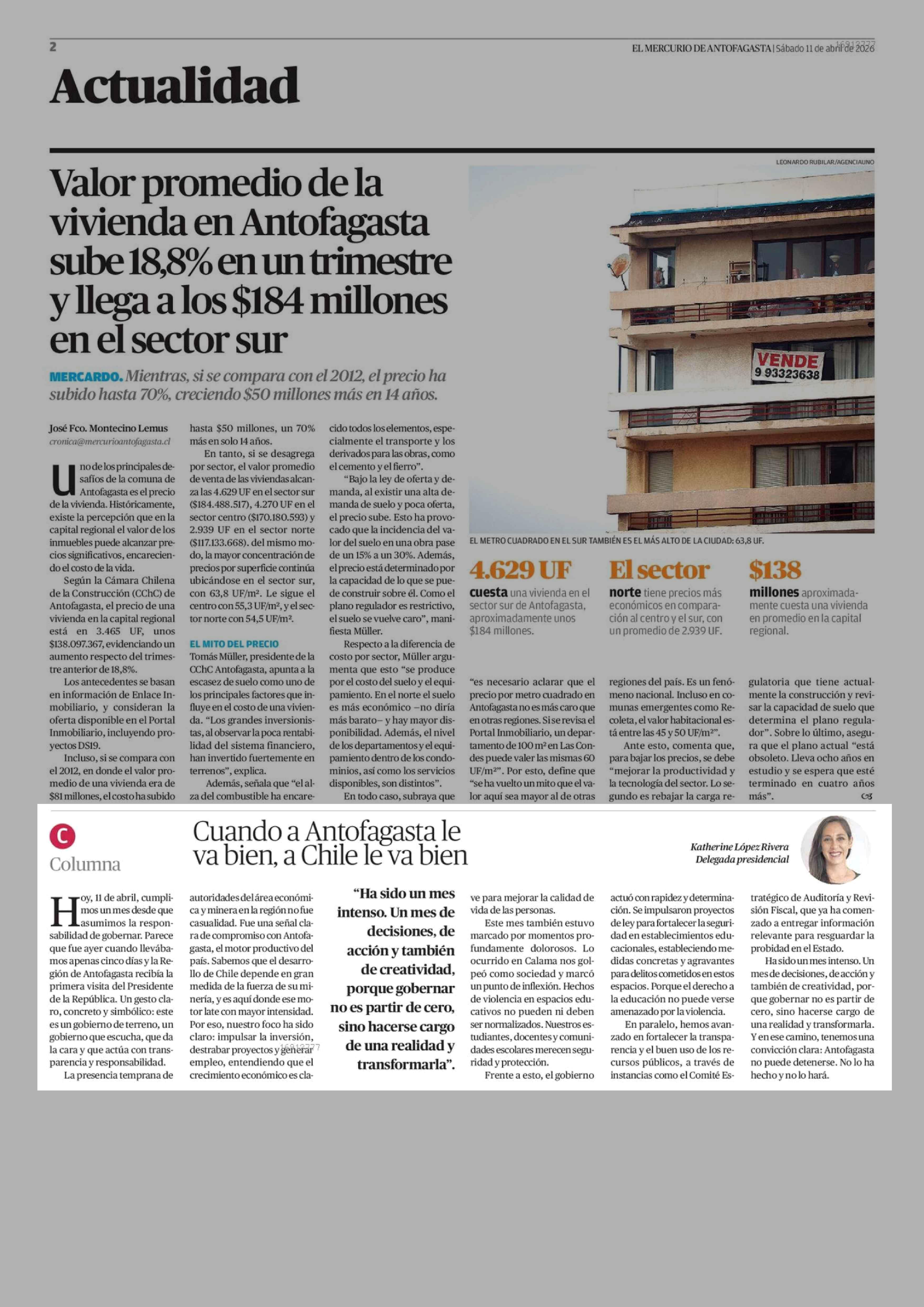 Columnas de Opinión: Cuando a Antofagasta le va bien, a Chile le va bien 11-04-2026 El Mercurio de Antofagasta |