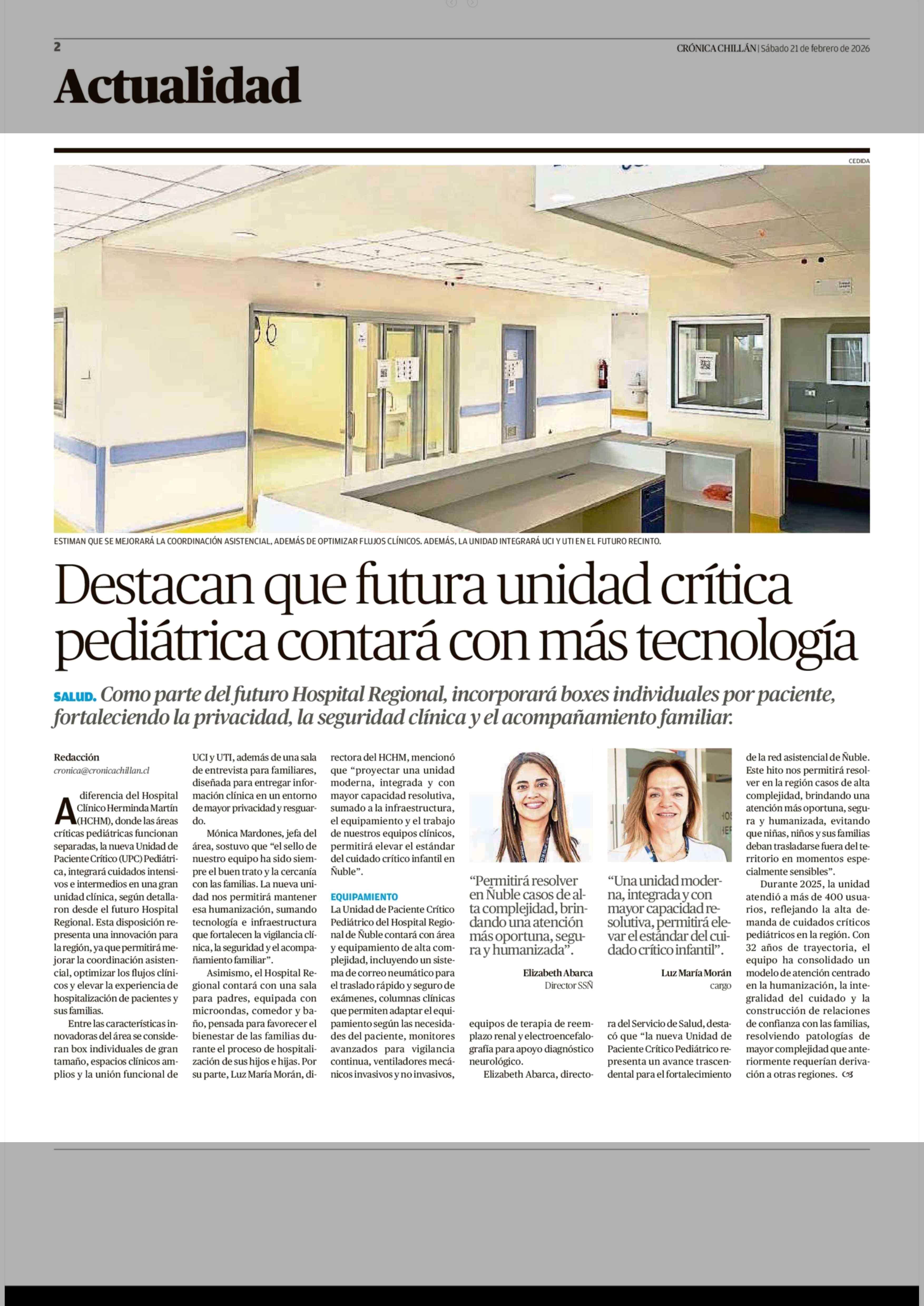 Título: Destacan que futura unidad crítica pediátrica contará con más tecnología