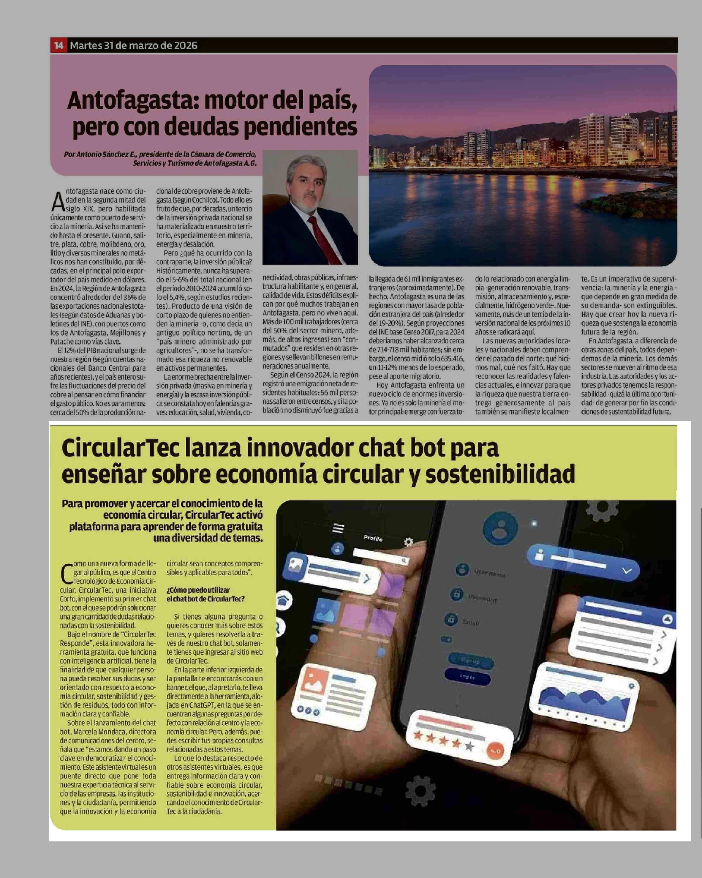 CircularTec lanza innovador chat bot para enseñar sobre economía circular y sostenibilidad 31-03-2026 El Austral de Osorno |