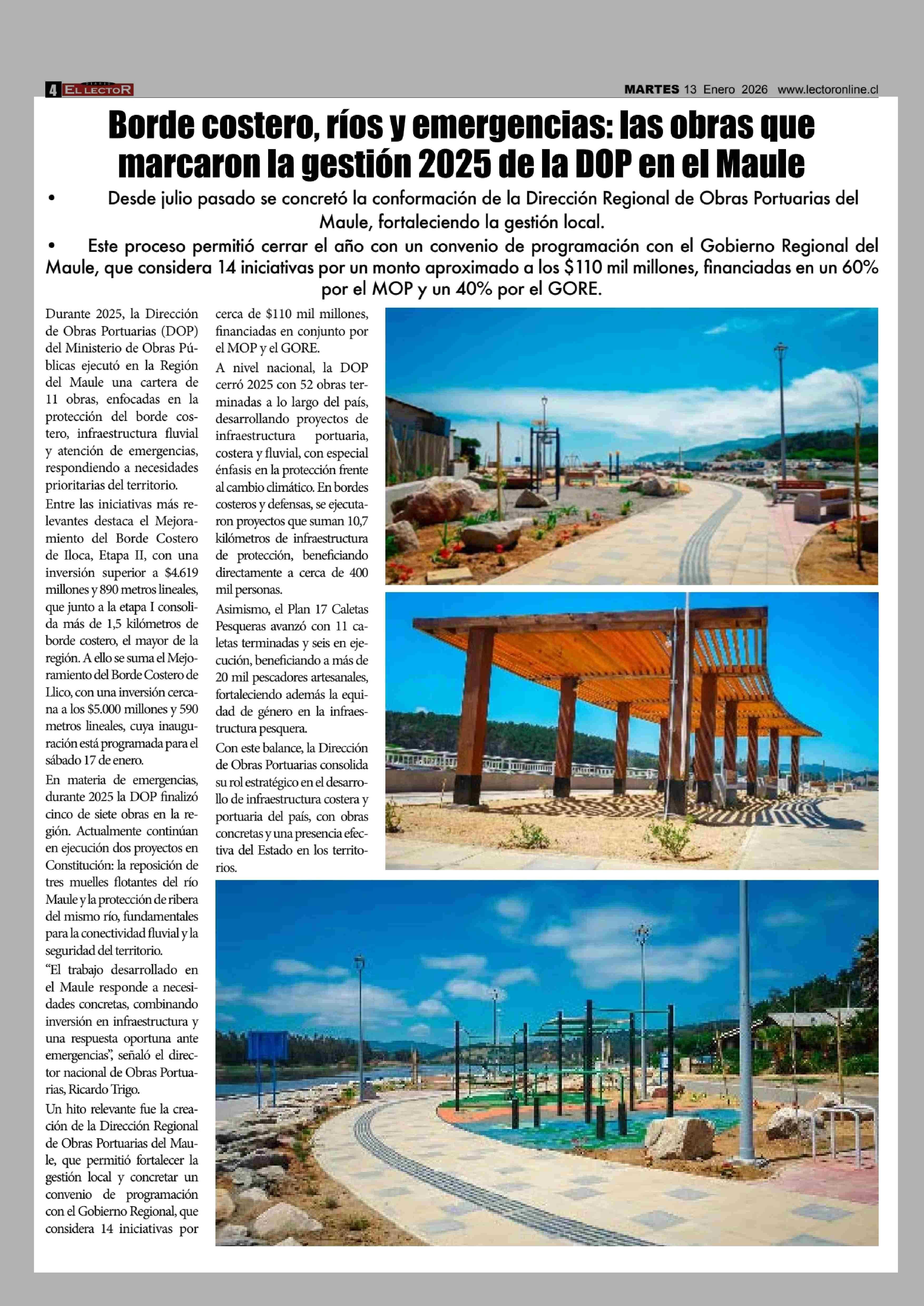 Borde costero, ríos y emergencias: las obras que marcaron la gestión 2025 de la DOP en el Maule 13-01-2026 El Lector |
