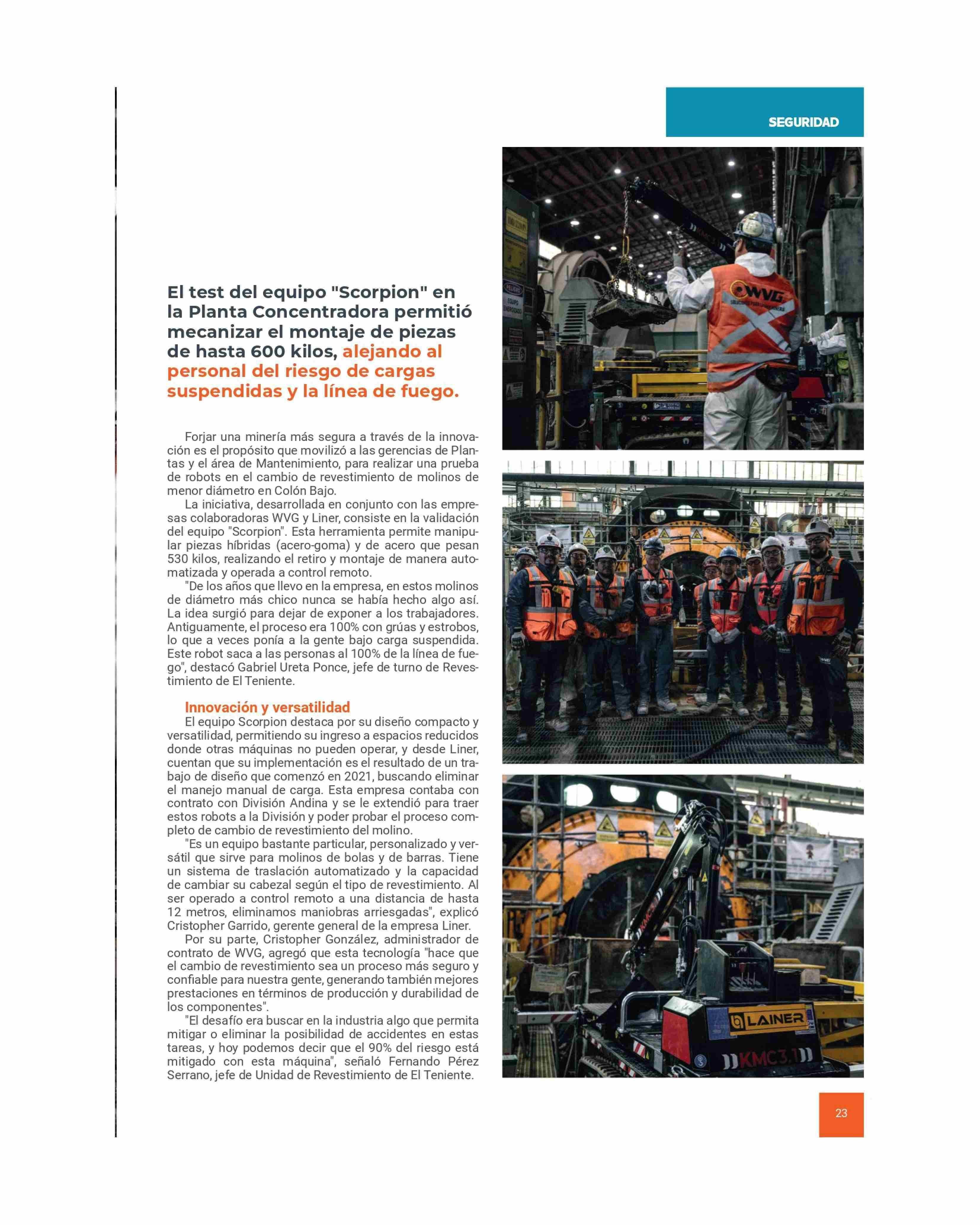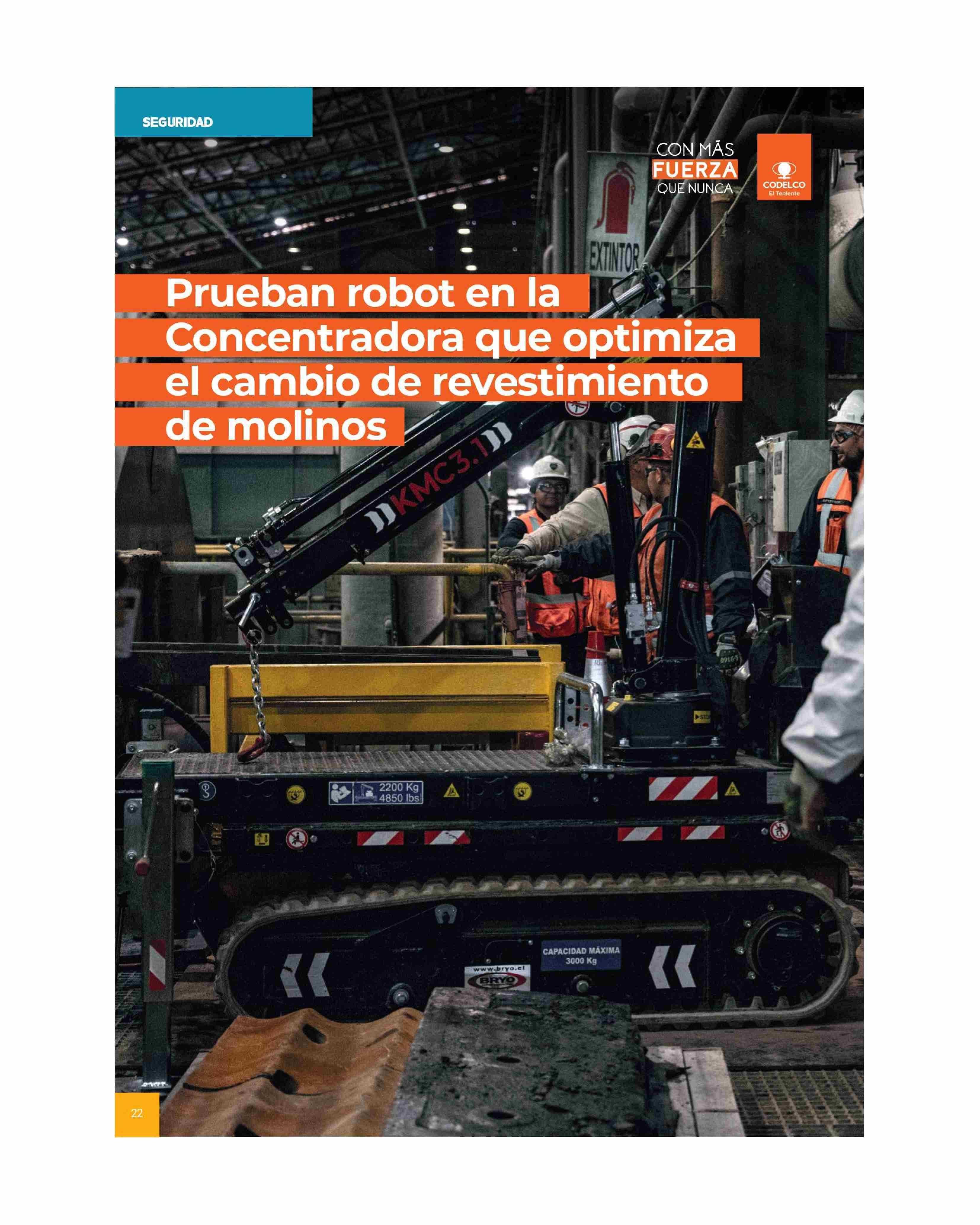 | Título: | Prueban robot en la Concentradora que optimiza el cambio de revestimiento de molinos |