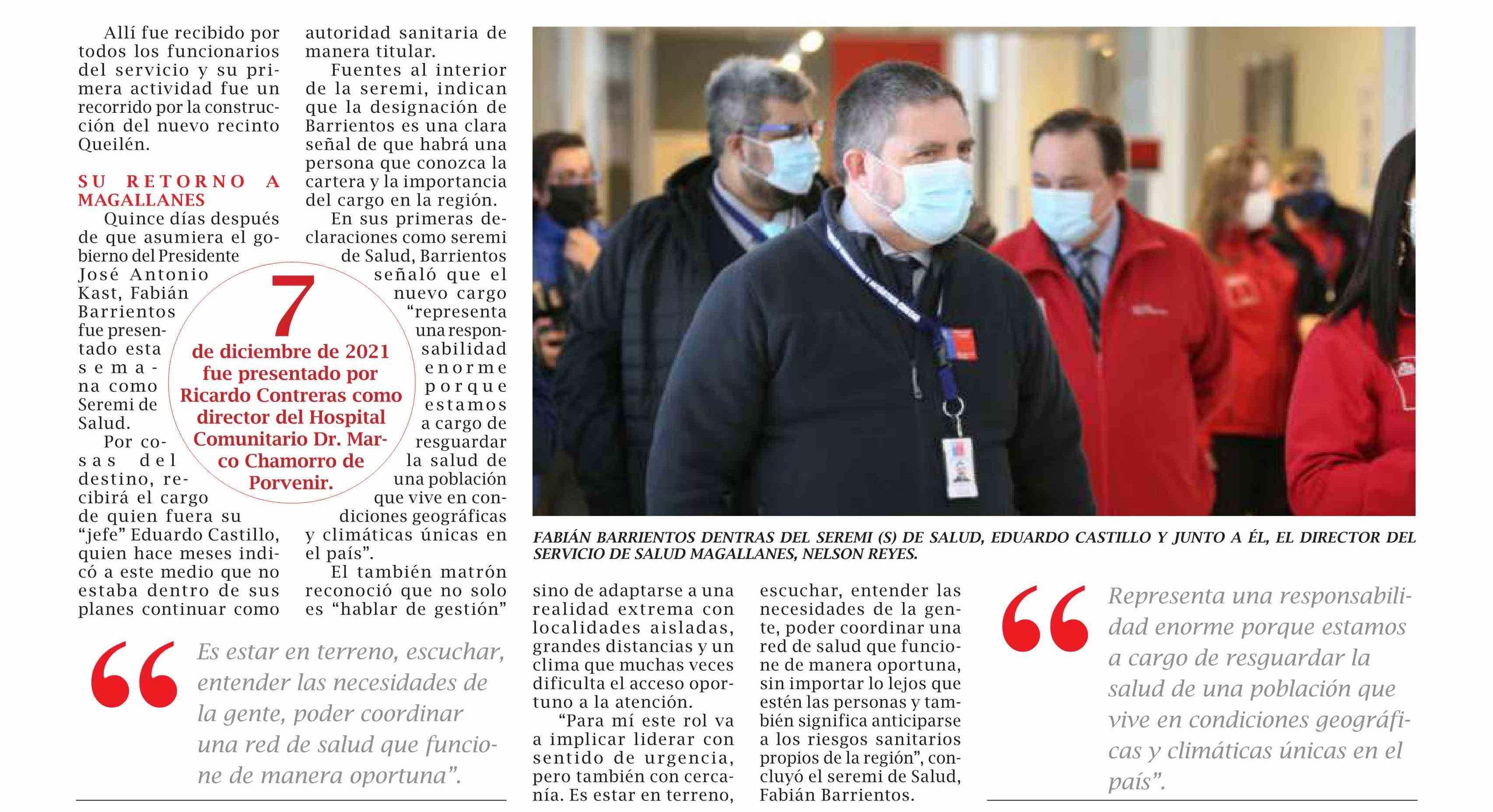 Título: El retomo del matrón magallánico Fabián Barrientos a la Seremi de Salud