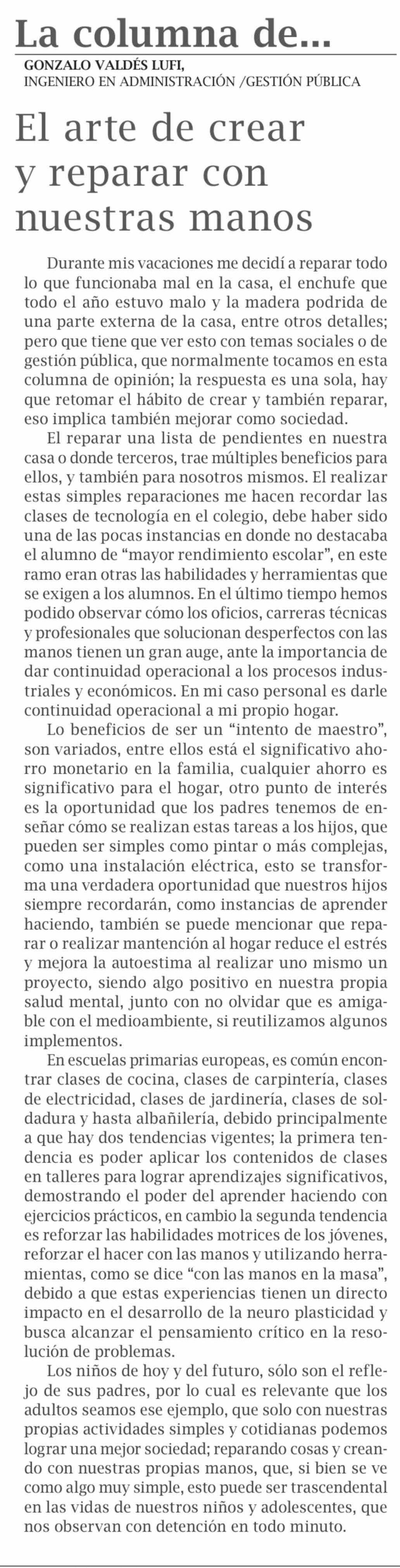 | Título: | El arte de crear y reparar con nuestras manos |