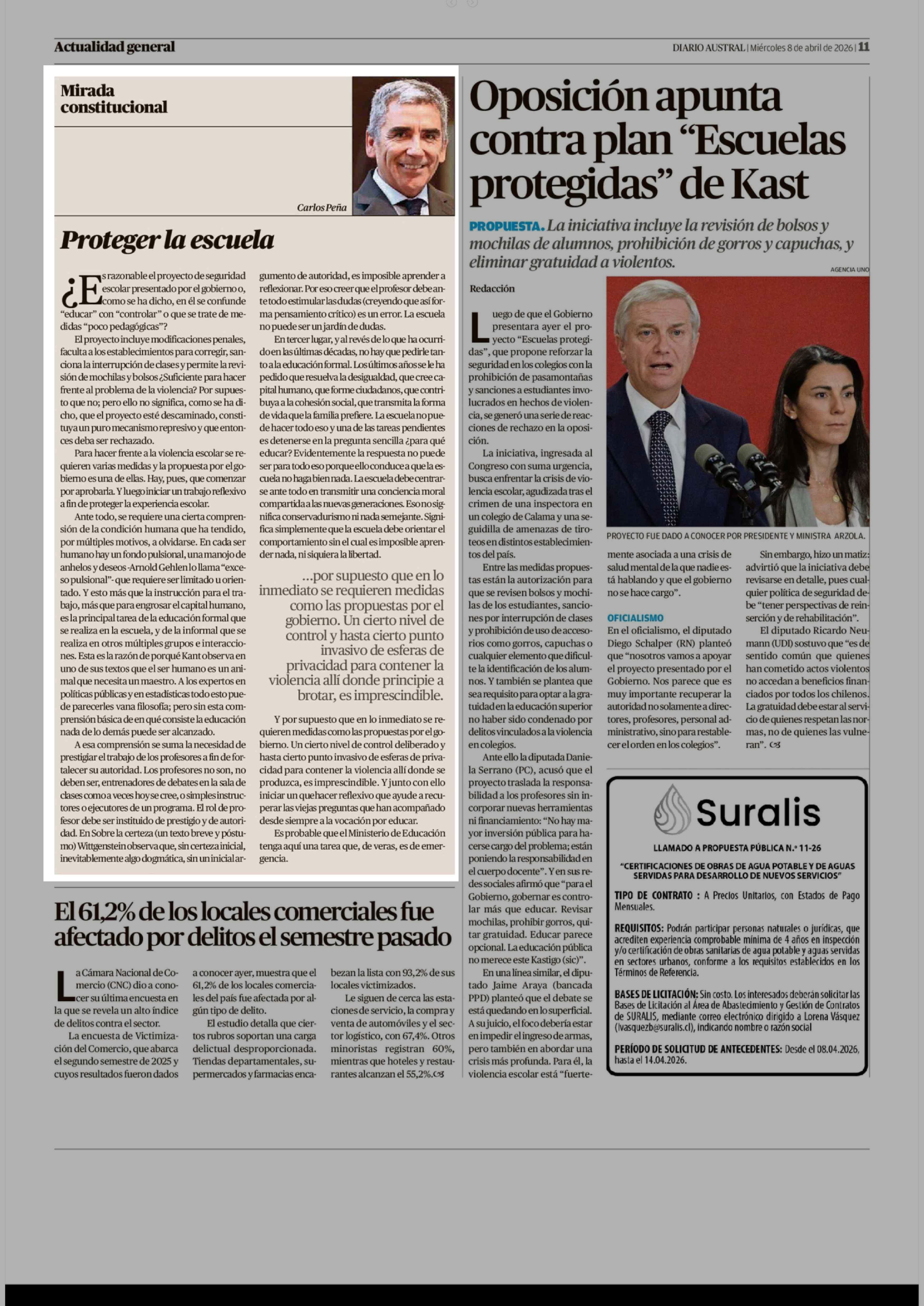 COLUMNAS DE OPINIÓN: Proteger la escuela 08-04-2026 Diario Austral Región de Los Ríos |