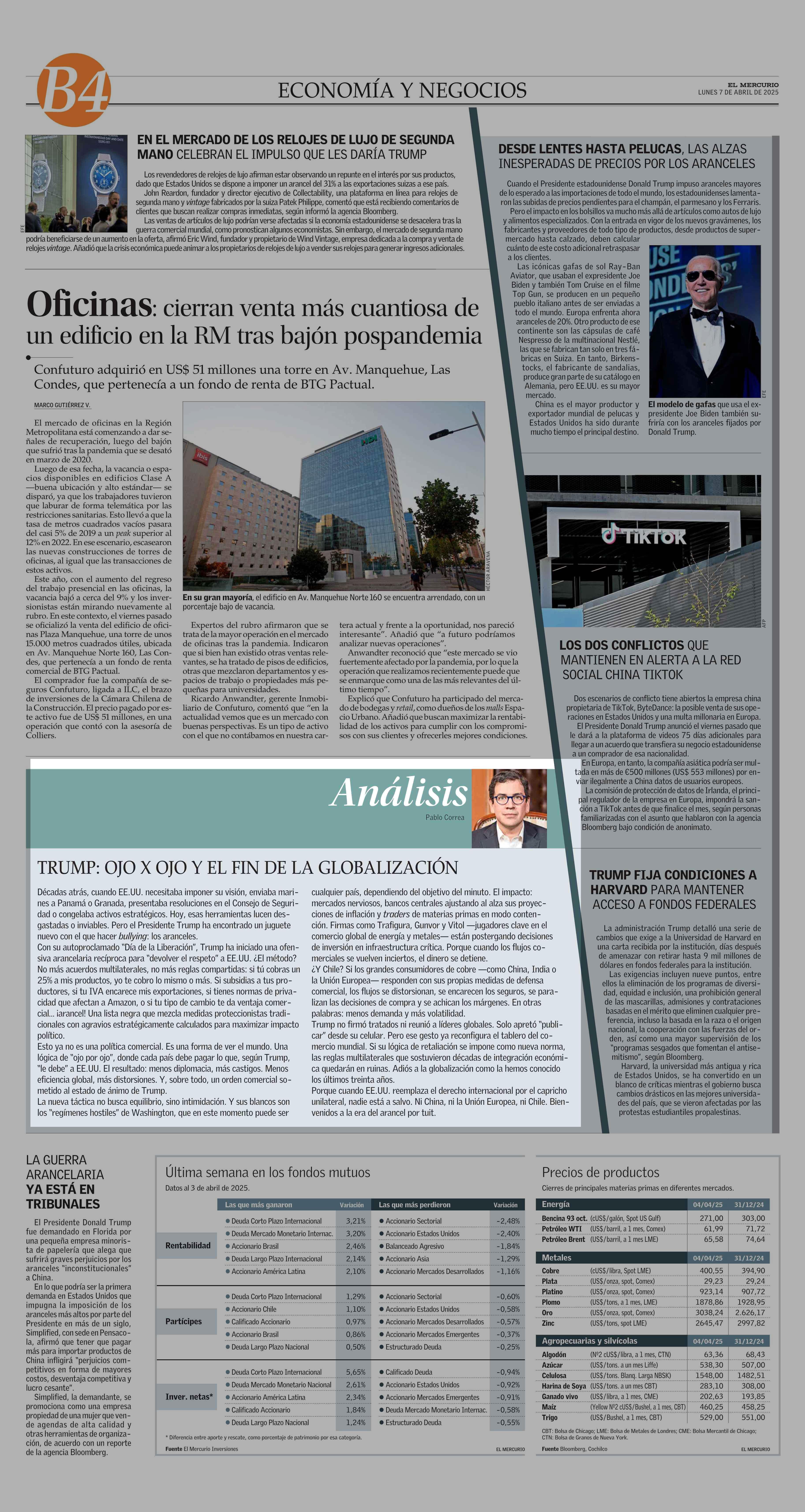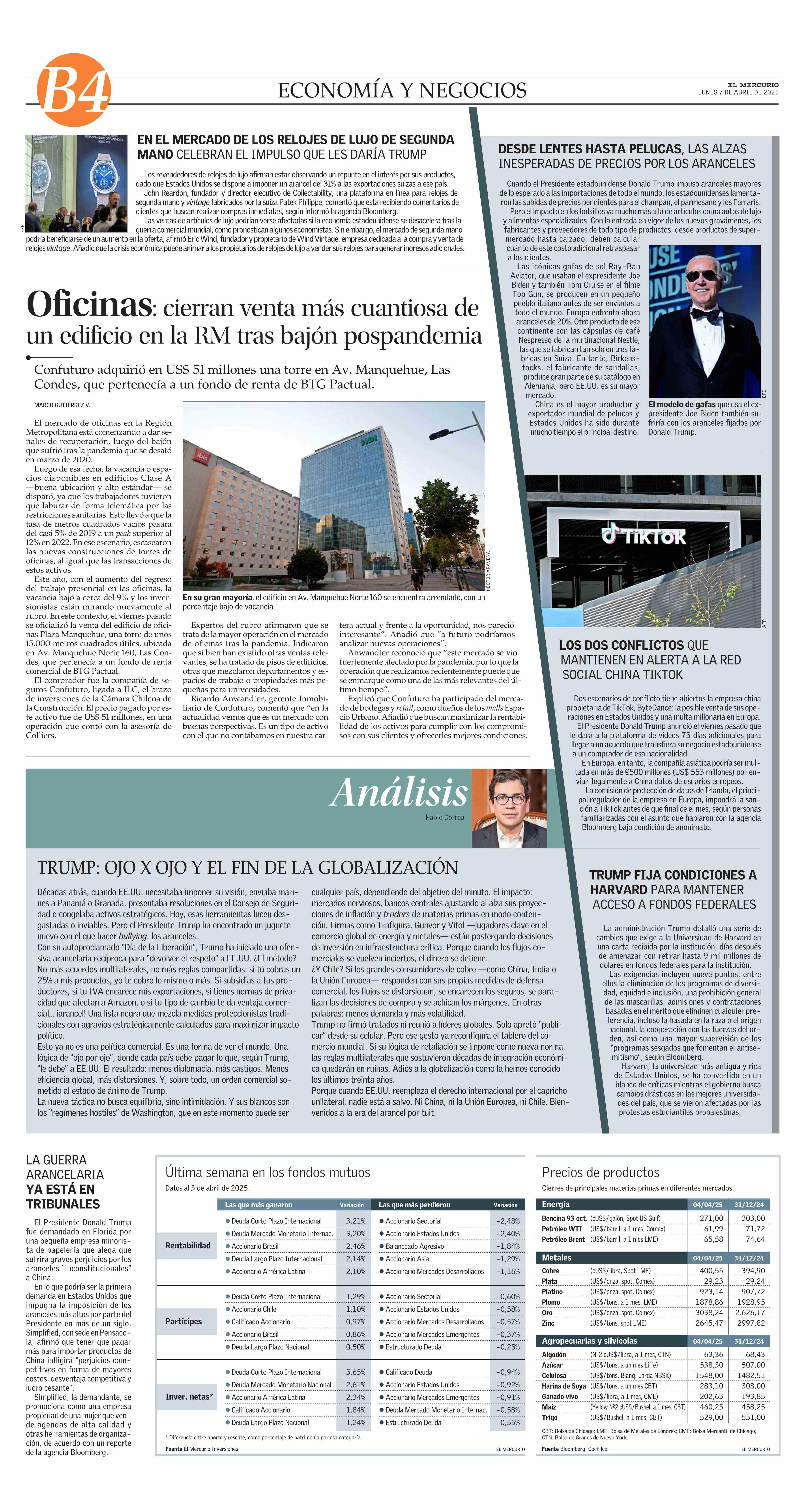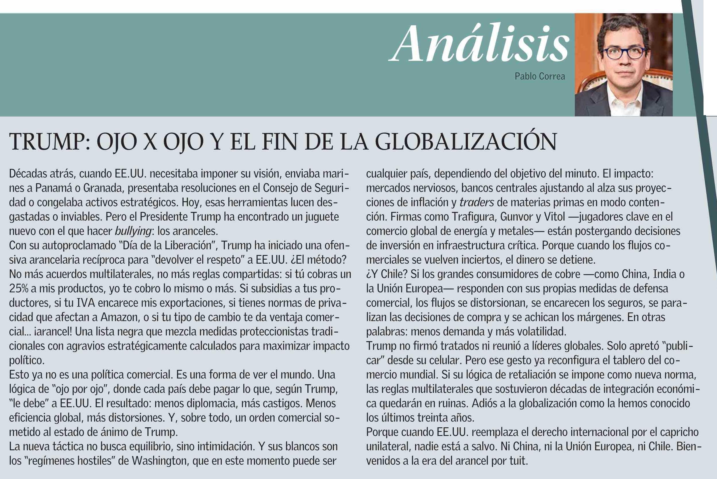 TRUMP: OJO X OJO Y EL FIN DE LA GLOBALIZACIÓN 07-04-2025 El Mercurio |