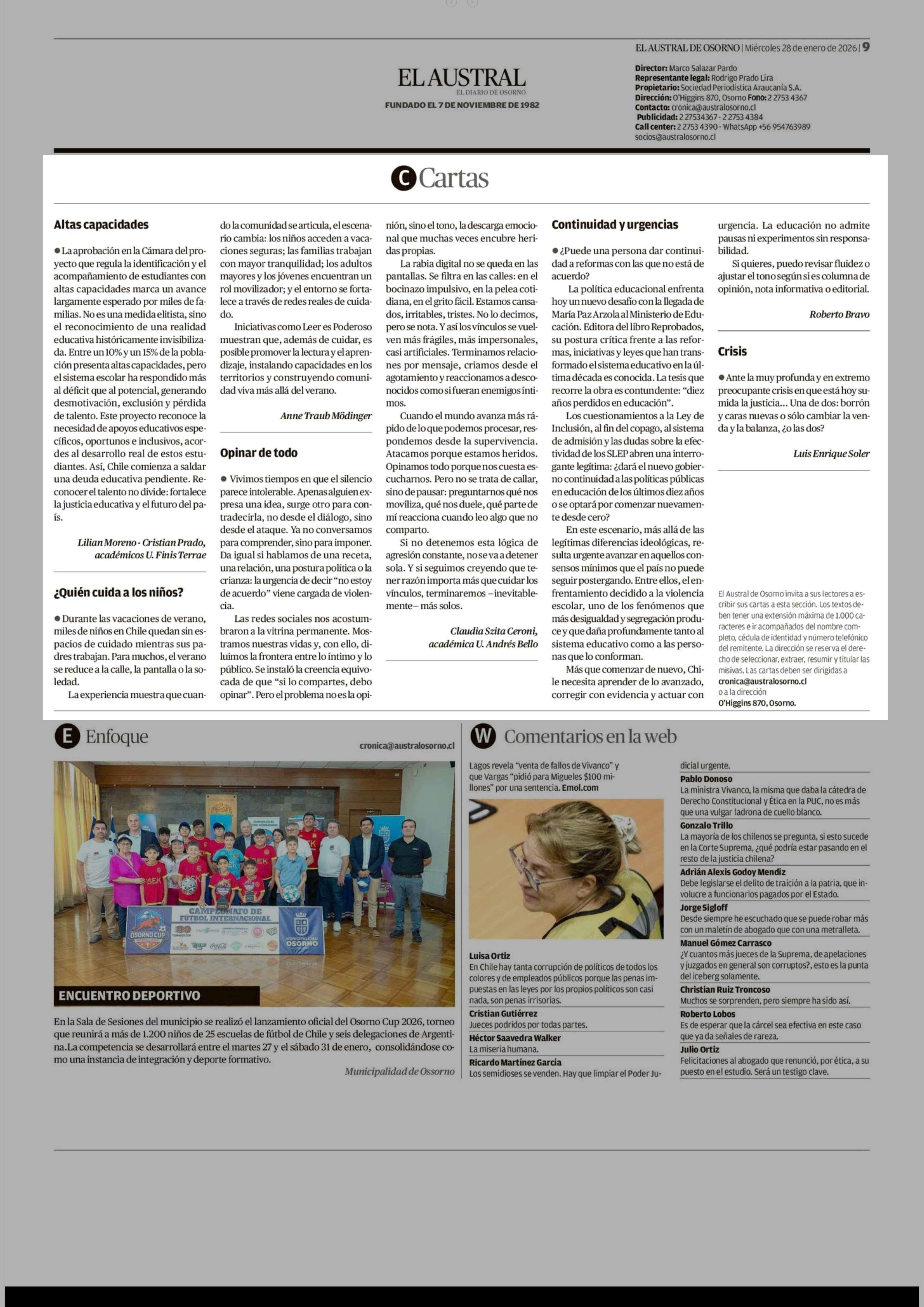 Fuente: El Austral de Osorno (El Austral de Osorno) Página(s): 9