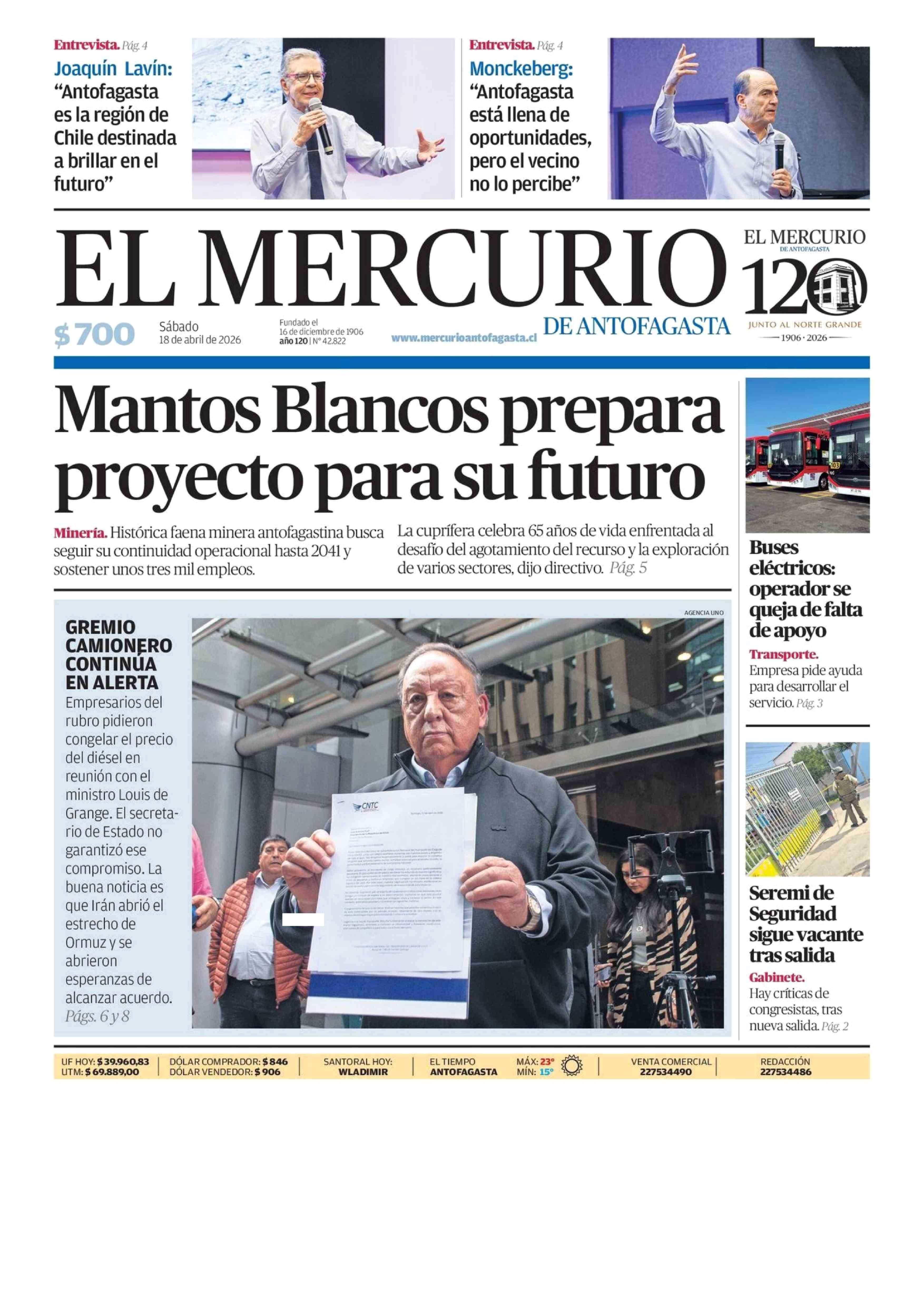 Fecha: 18-04-2026 Sector: Portada Región: Región de Antofagasta