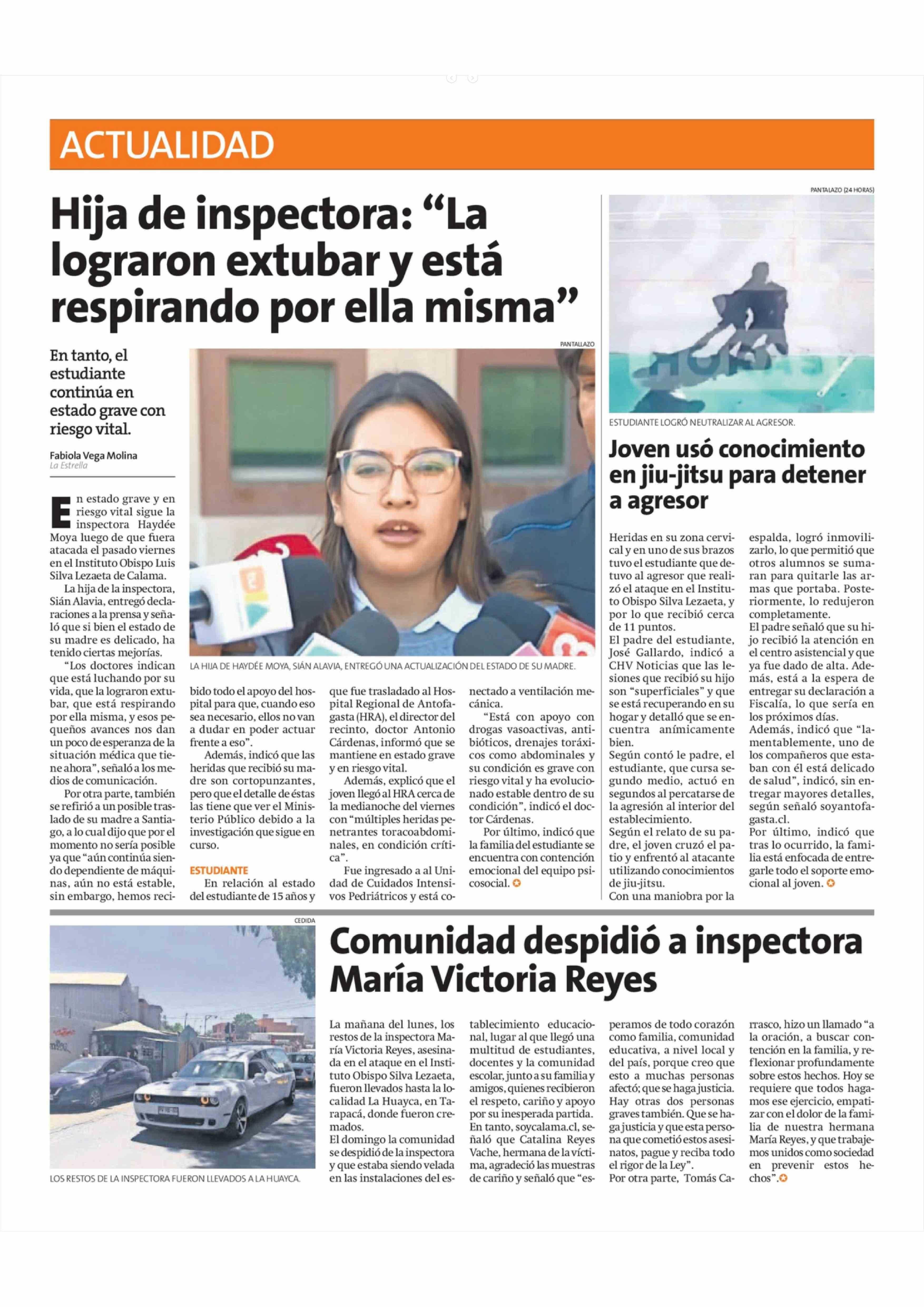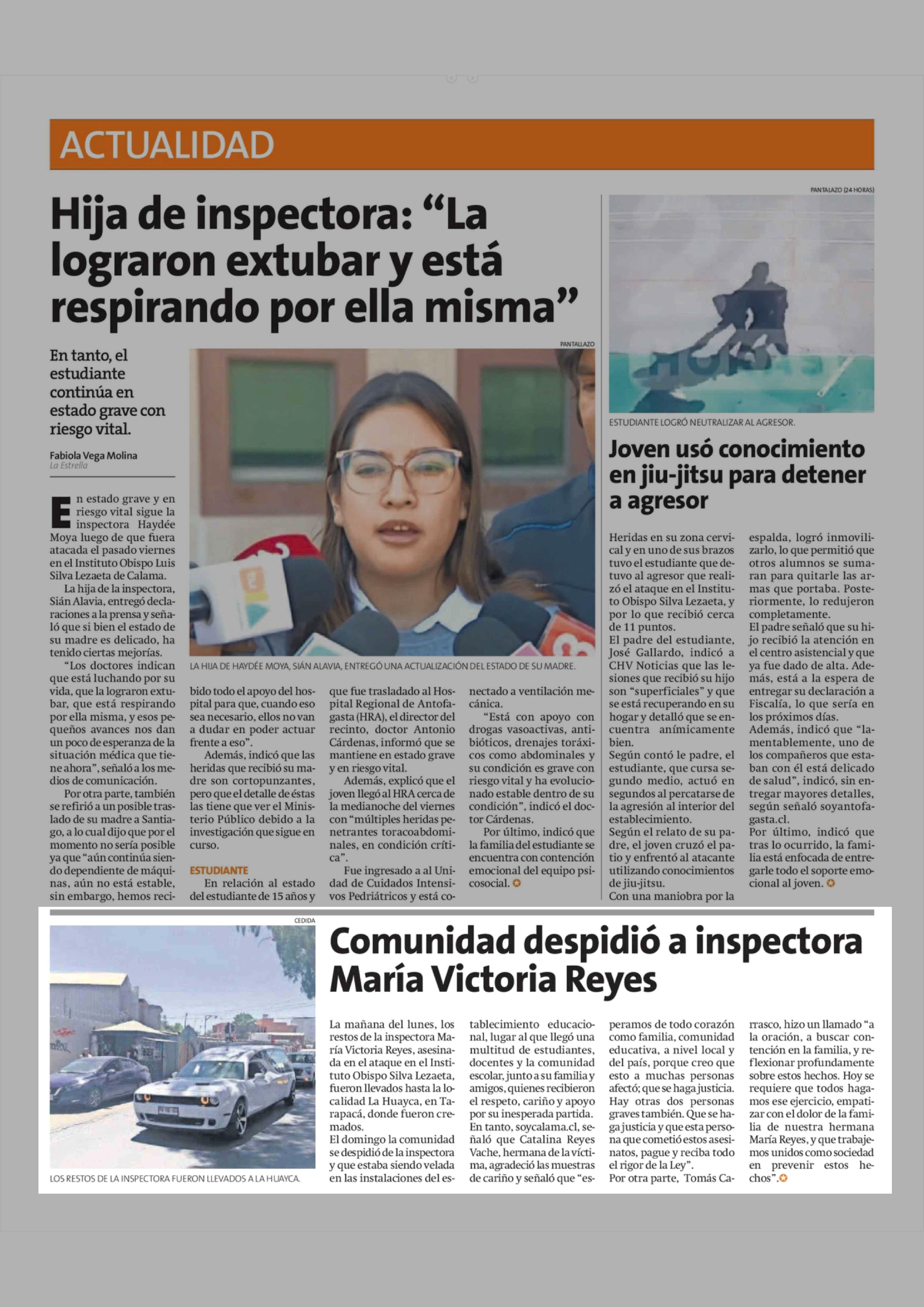 Comunidad despidió a inspectora María Victoria Reyes 31-03-2026 La Estrella de Antofagasta |