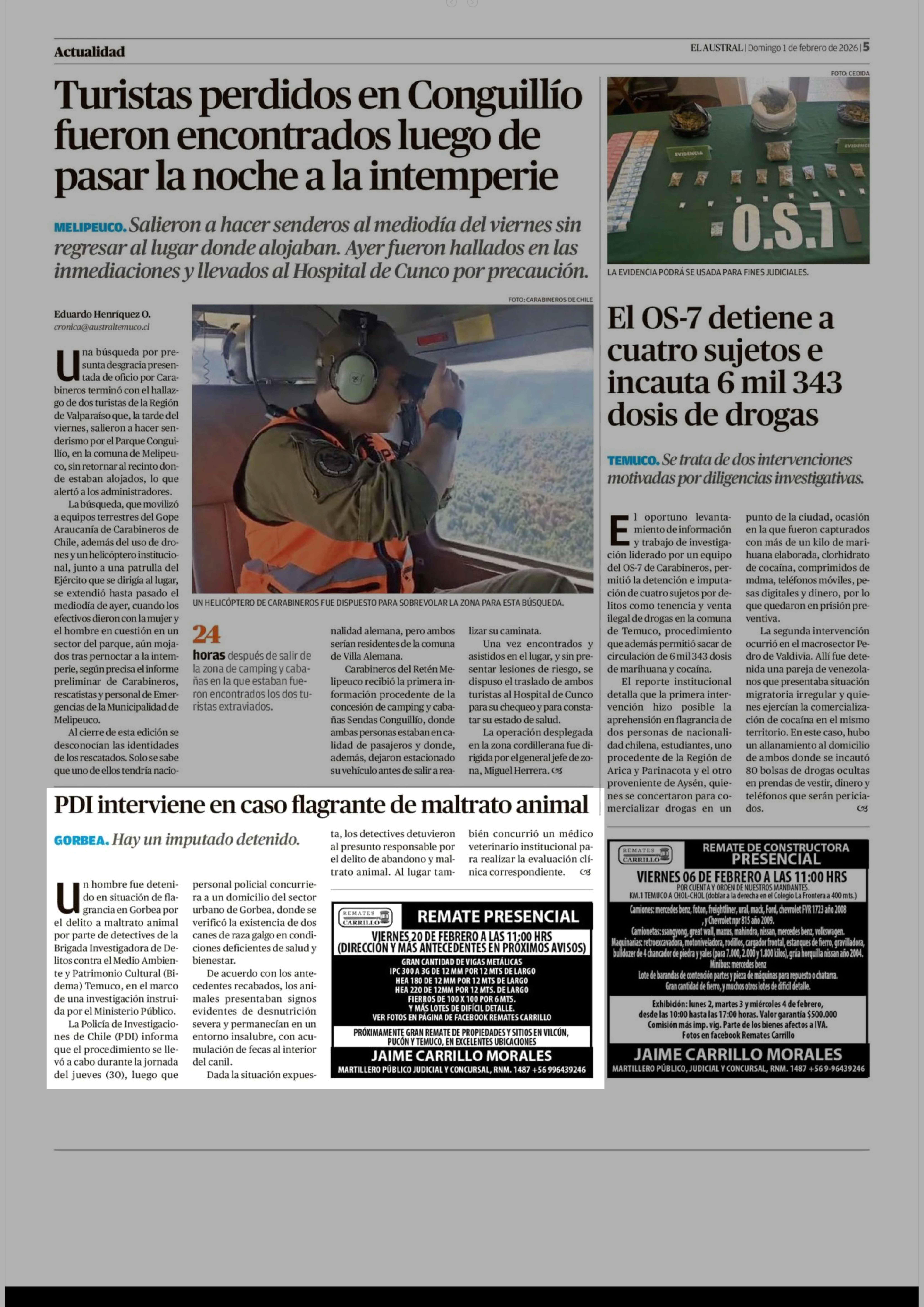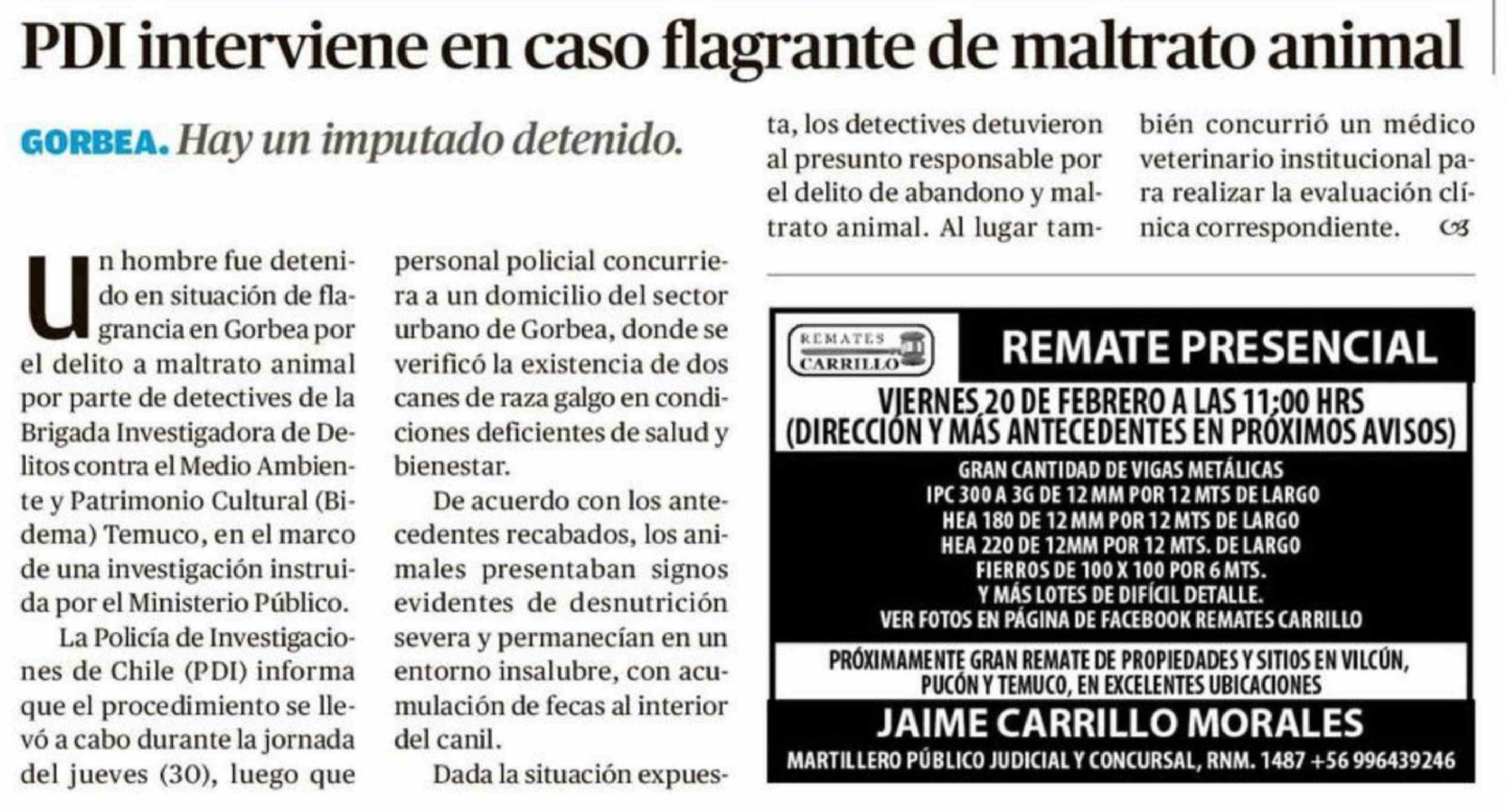PDI interviene en caso flagrante de maltrato animal 01-02-2026 El Austral de la Araucanía |