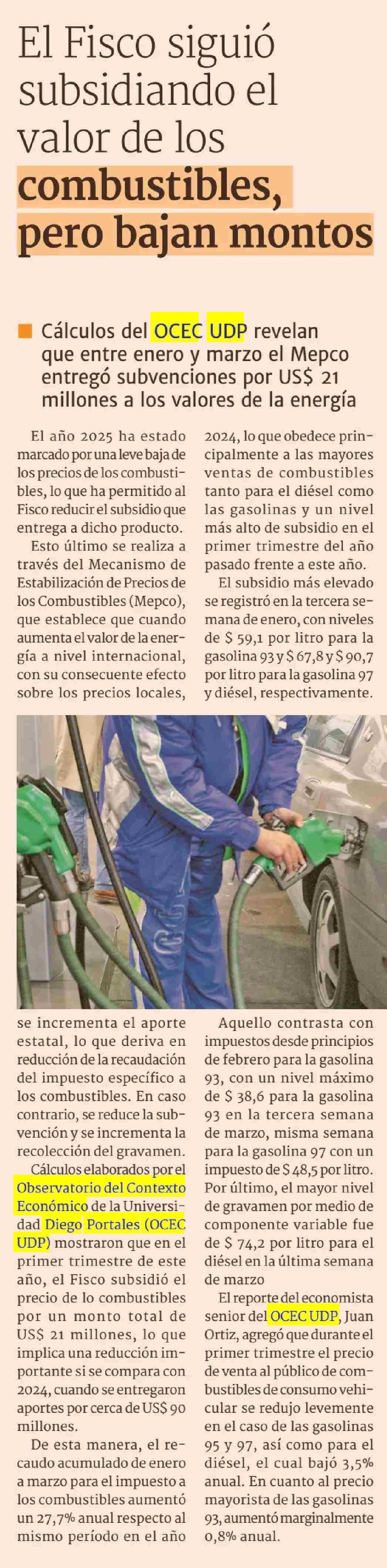 | Título: | El Fisco siguió subsidiando el valor de los combustibles, pero bajan montos |