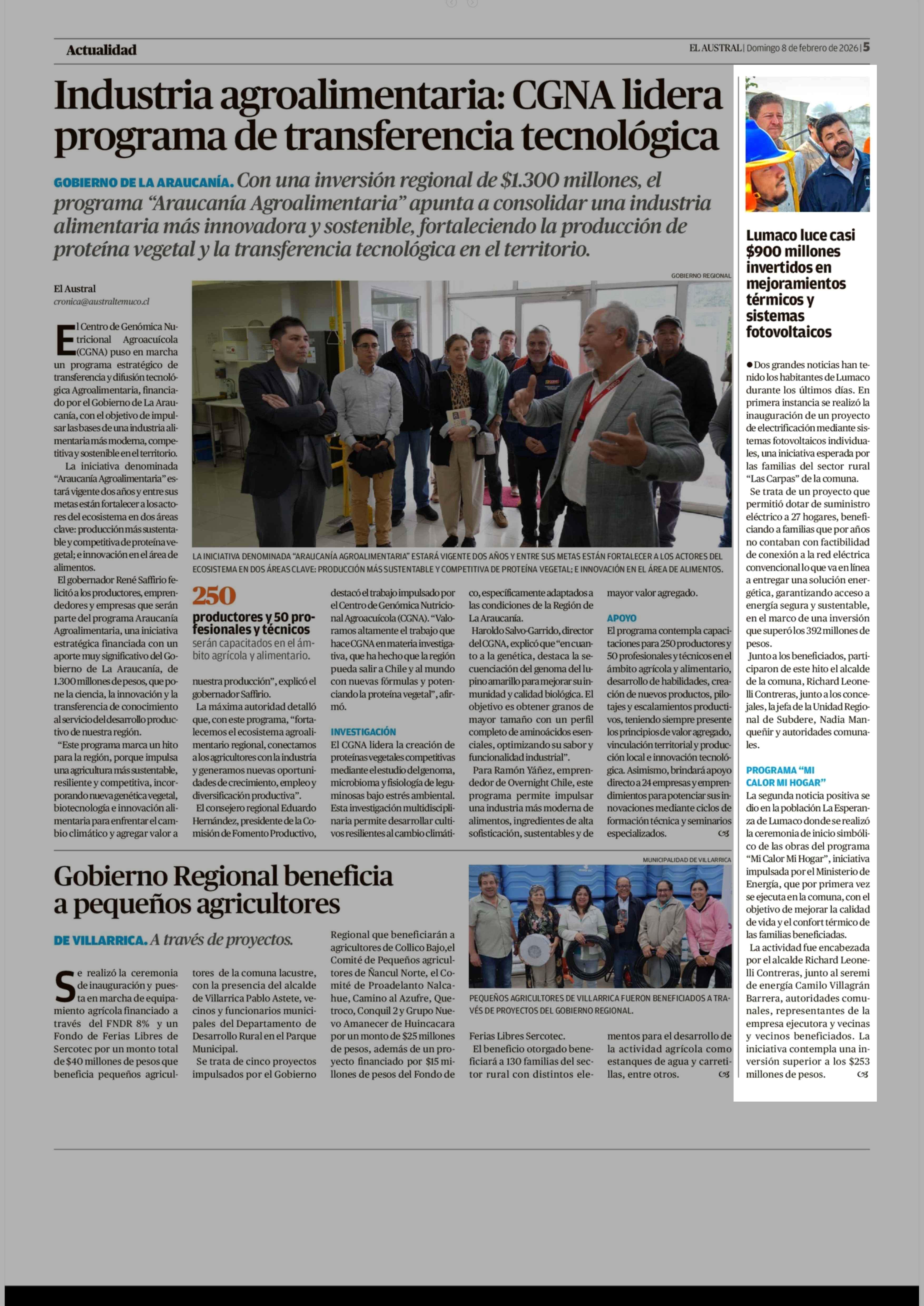 | Fecha: | 08-02-2026 | Sector: | Noticia general | Región: | Región de la Araucanía |