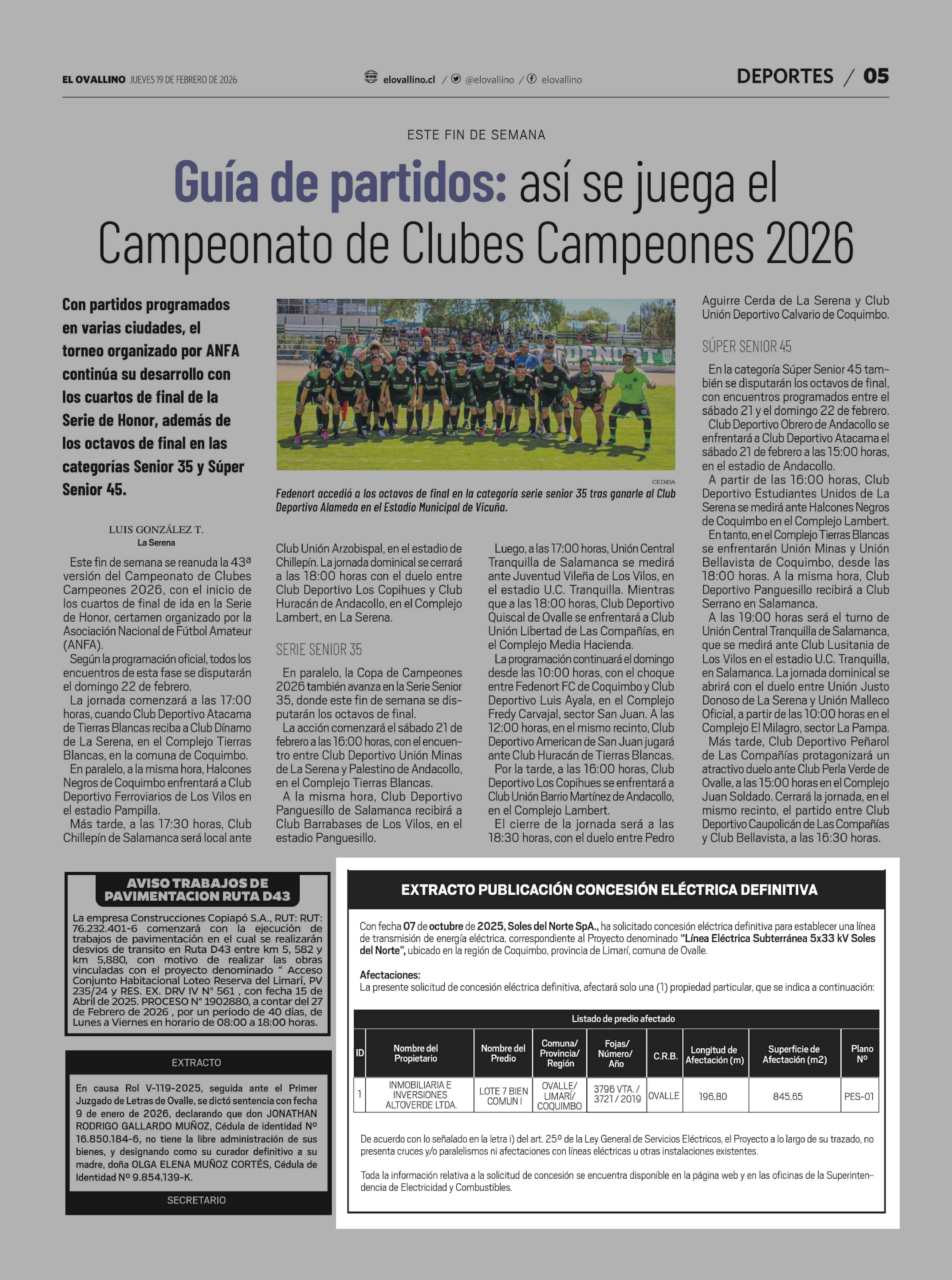 Extractos: EXTRACTO PUBLICACIÓN CONCESIÓN ELÉCTRICA DEFINITIVA 19-02-2026 El Ovallino |