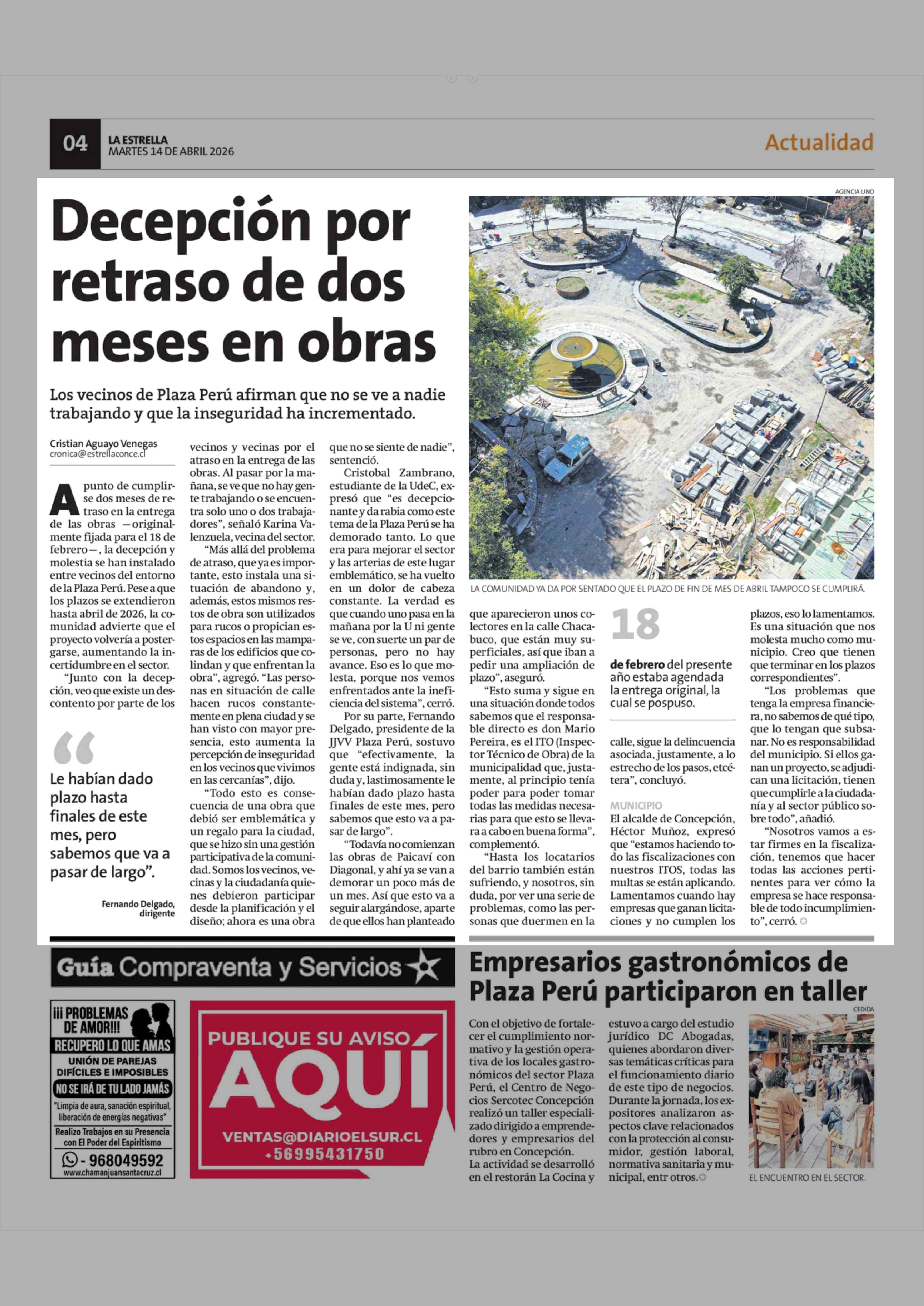 Decepción por retraso de dos meses en obras 14-04-2026 La Estrella de Concepción |