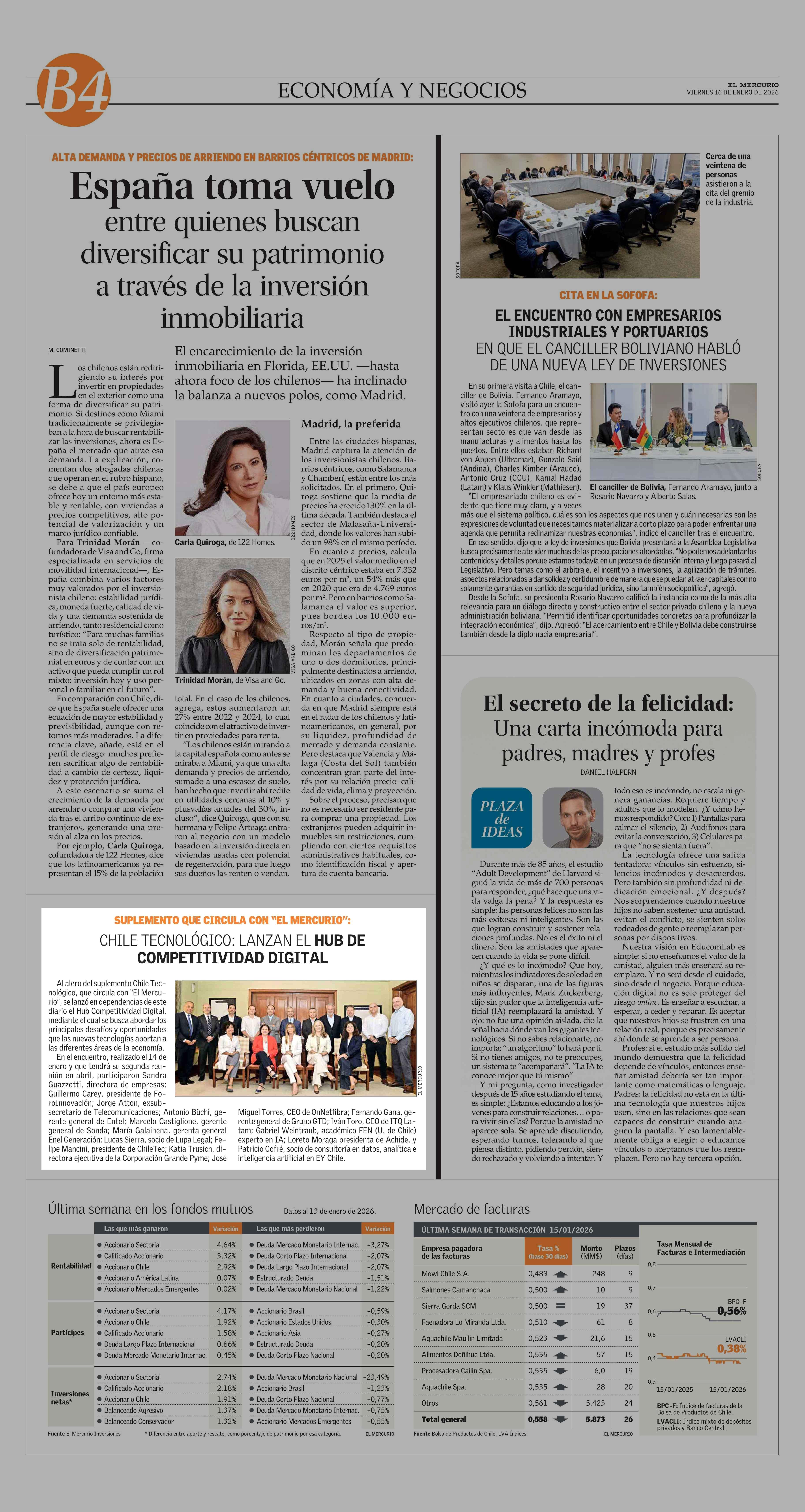 CHILE TECNOLÓGICO: LANZAN EL HUB DE COMPETITIVIDAD DIGITAL 16-01-2026 El Mercurio |