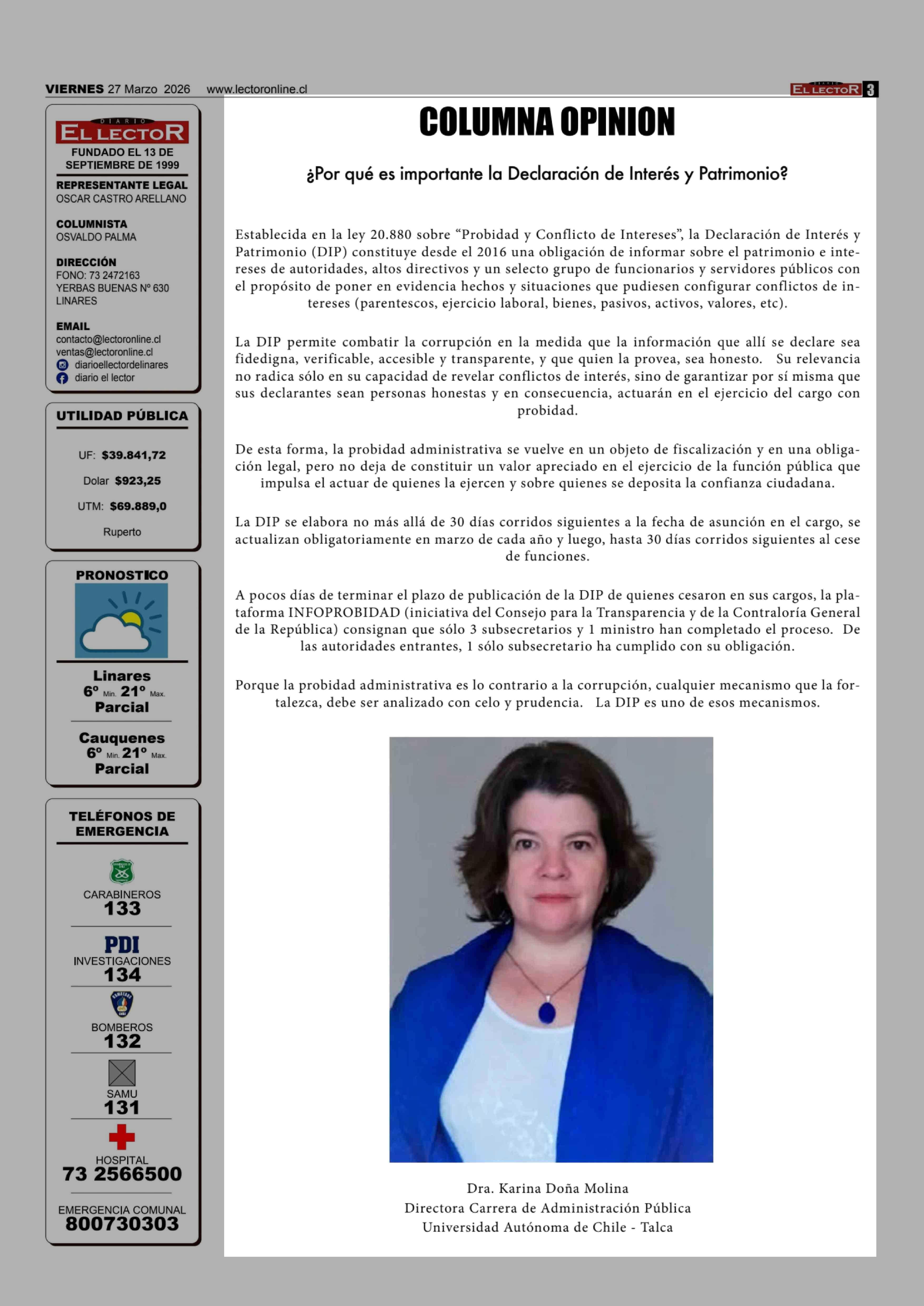 Fecha: 27-03-2026 Sector: Columnas de Opinión Región: Región del Maule