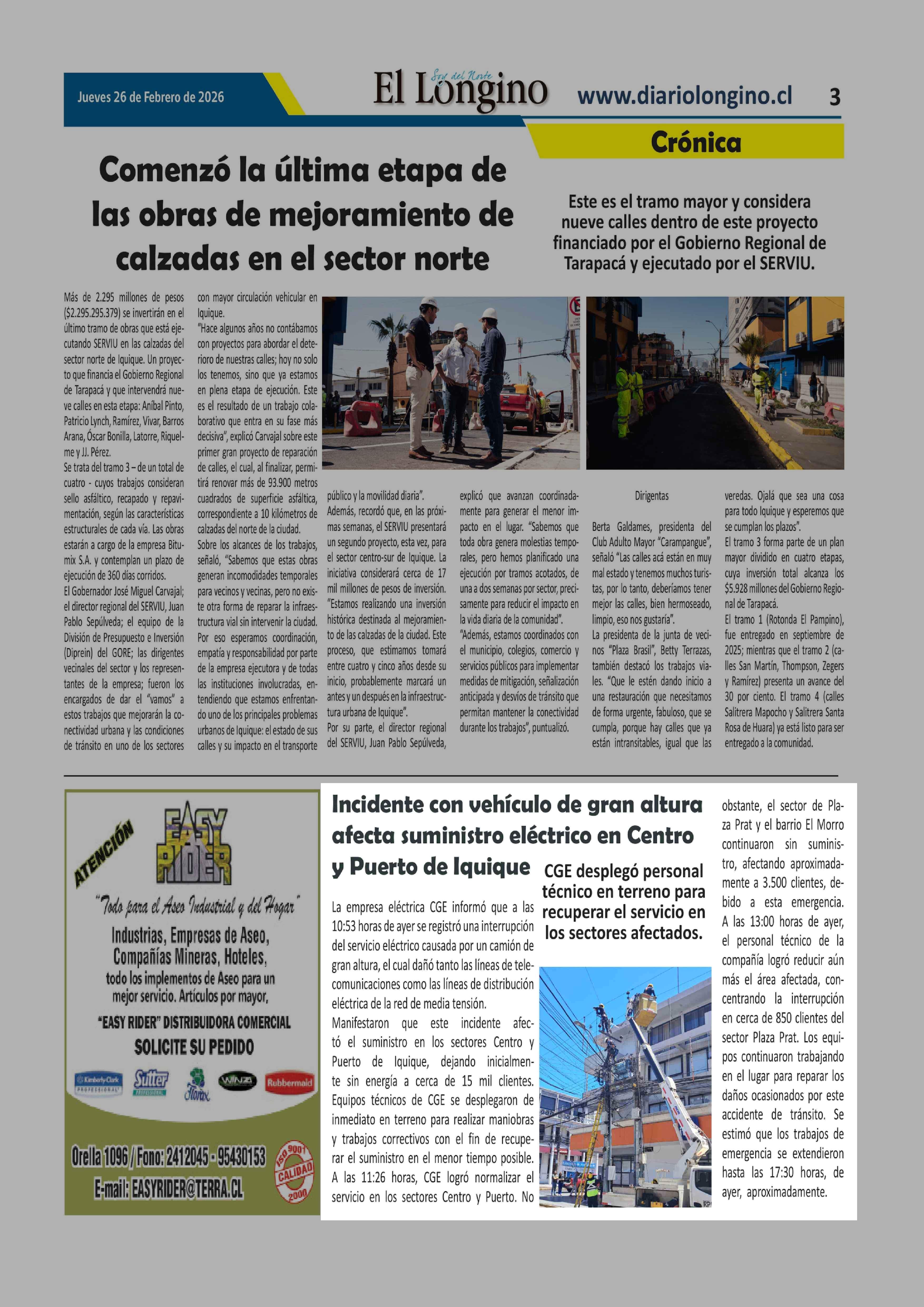 | Fecha: | 26-02-2026 | Sector: | Noticia general | Región: | Región de Tarapacá |