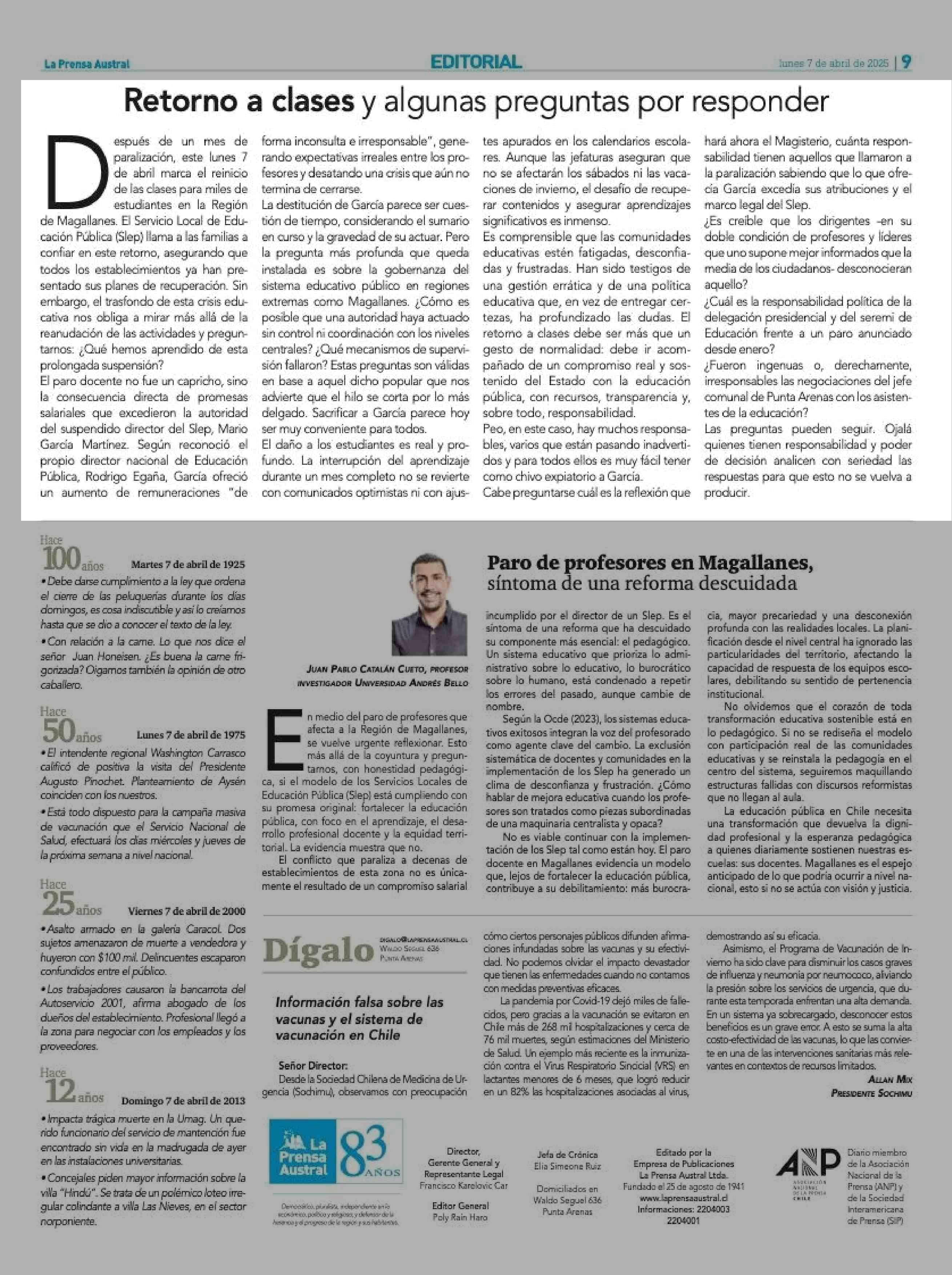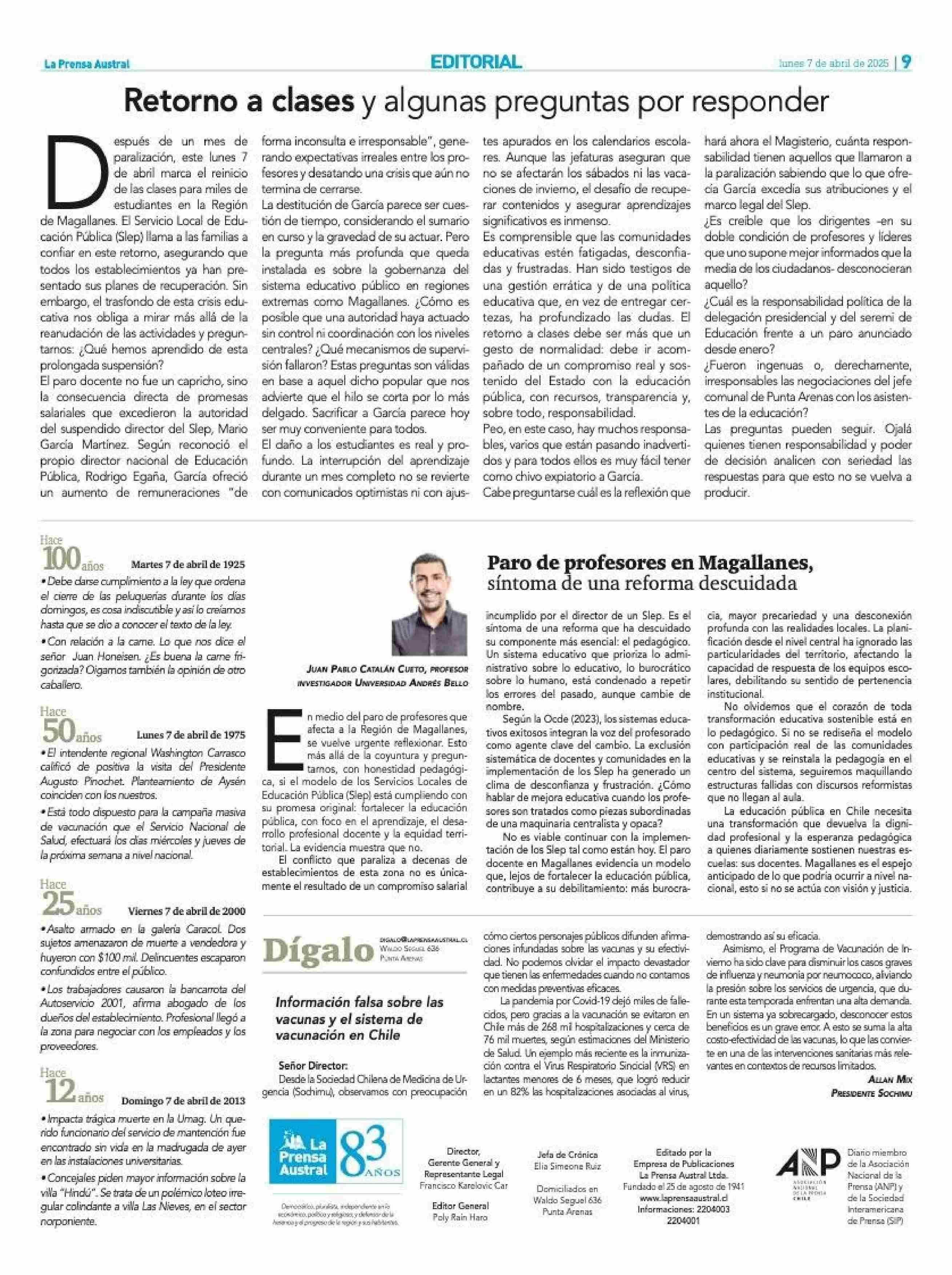Fecha: 07-04-2025 Sector: Editorial Región: Región de Magallanes y de la Antártica Chilena