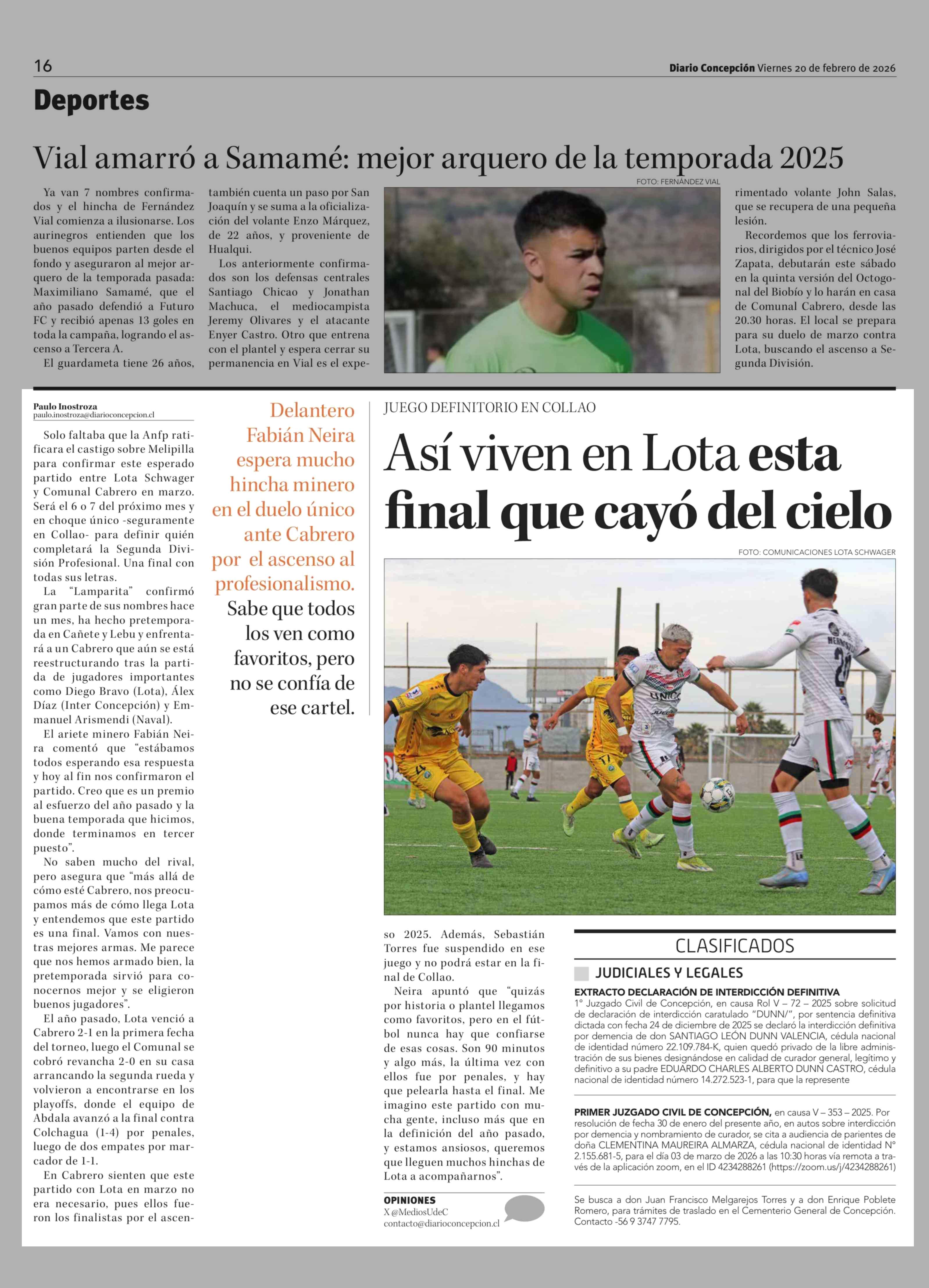 Así viven en Lota esta final que cayó del cielo 20-02-2026 Diario Concepción |
