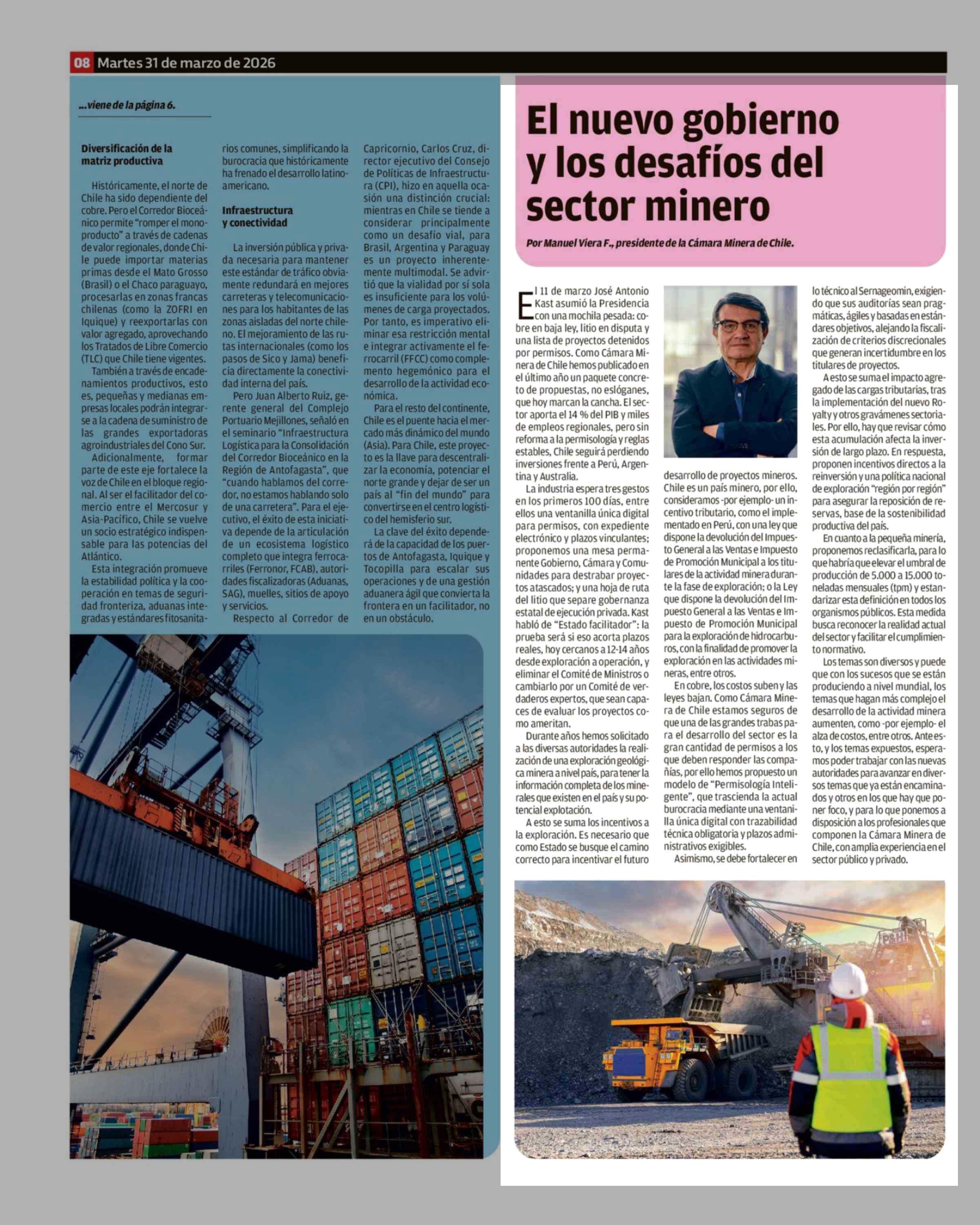 El nuevo gobierno y los desafíos del sector minero 31-03-2026 La Estrella de Iquique |