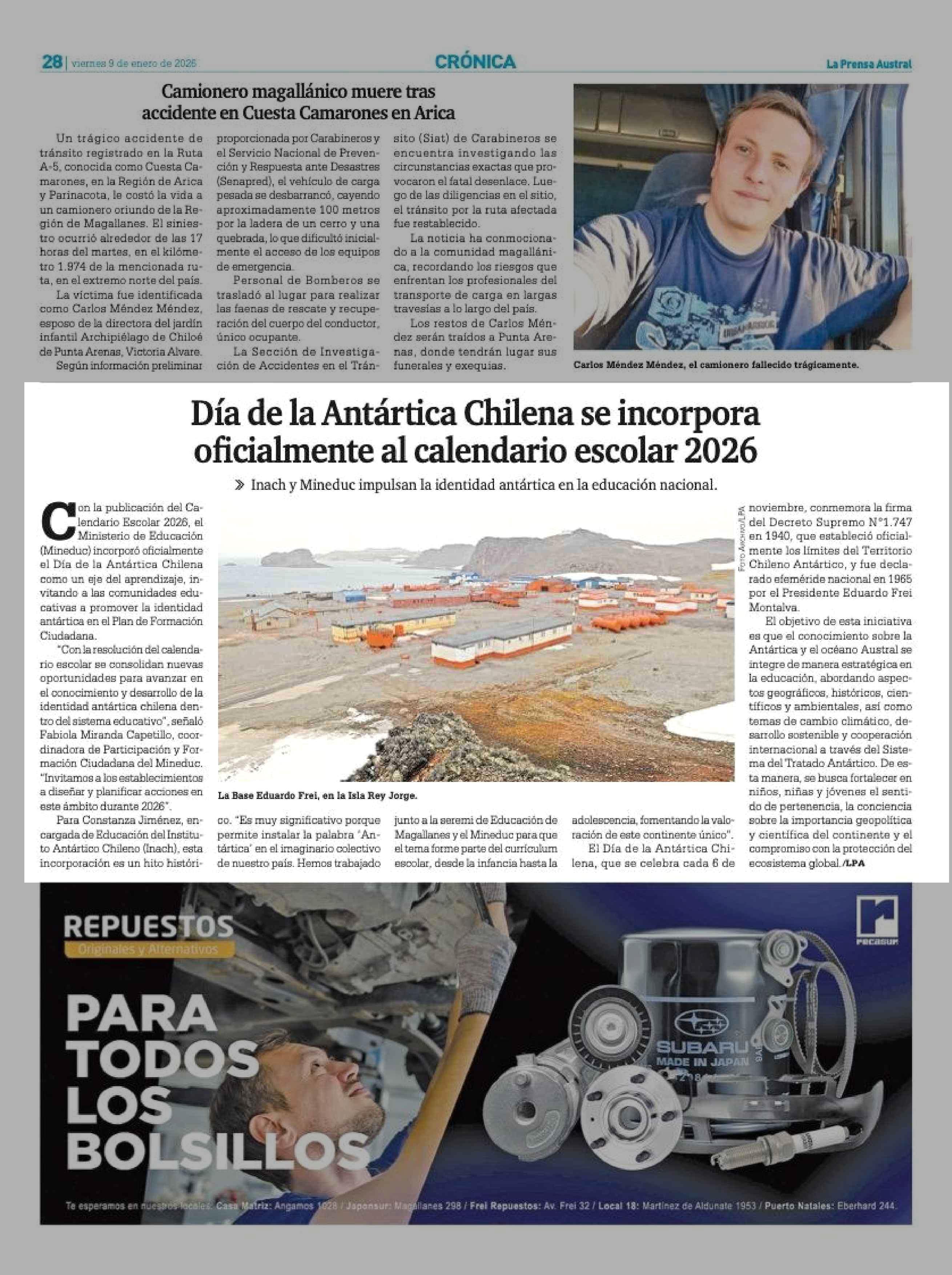 Día de la Antártica Chilena se incorpora oficialmente al calendario escolar 2026 09-01-2026 La Prensa Austral |