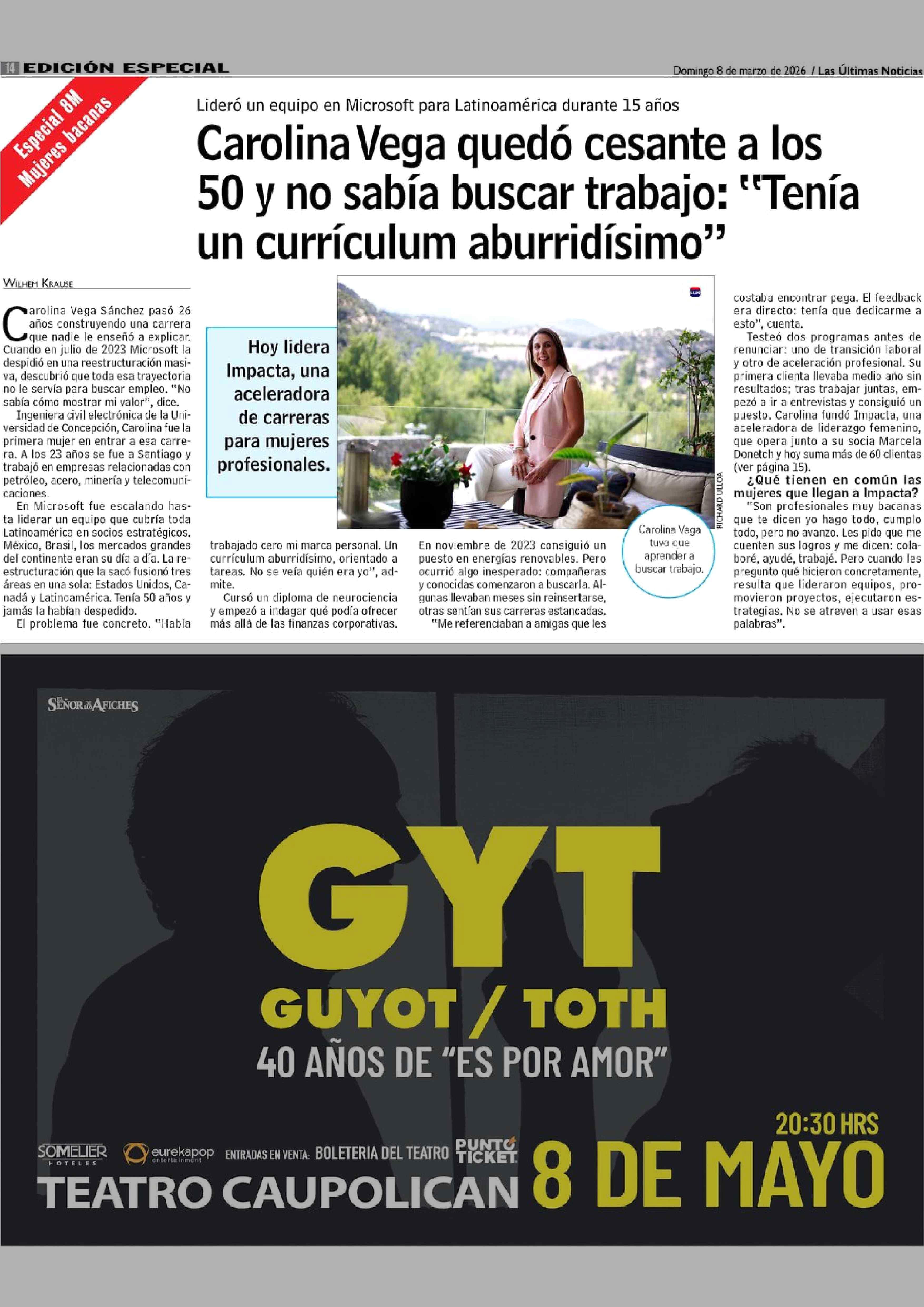 Título: Carolina Vega quedó cesante a los 50 y no sabía buscar trabajo: "Tenía un currículum aburridísimo"