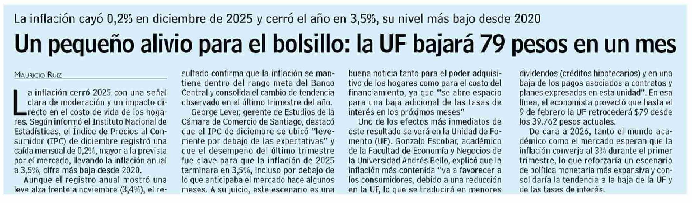 Un pequeño alivio para el bolsillo: la UF bajará 79 pesos en un mes 09-01-2026 Las Últimas Noticias |