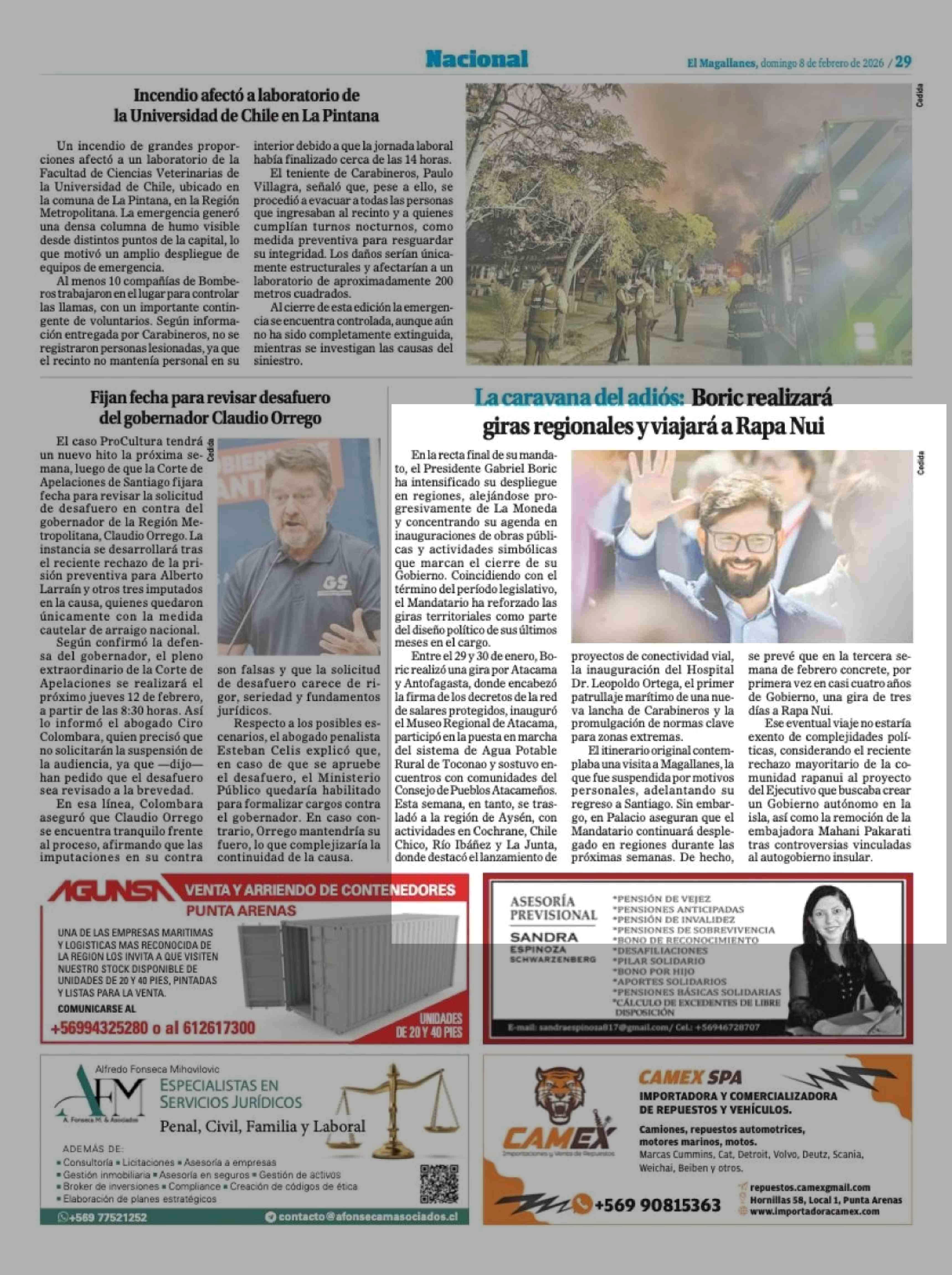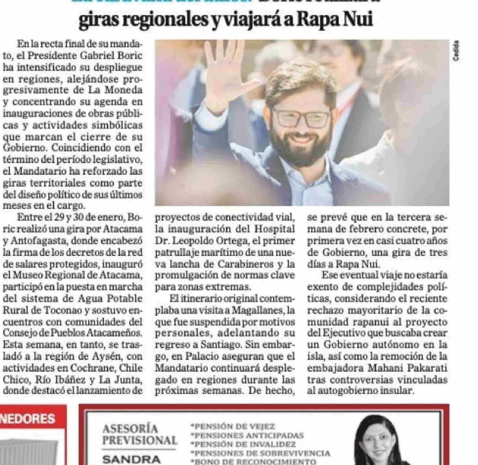 La caravana del adiós: Boric realizará giras regionales y viajará a Rapa Nui 08-02-2026 El Magallanes |