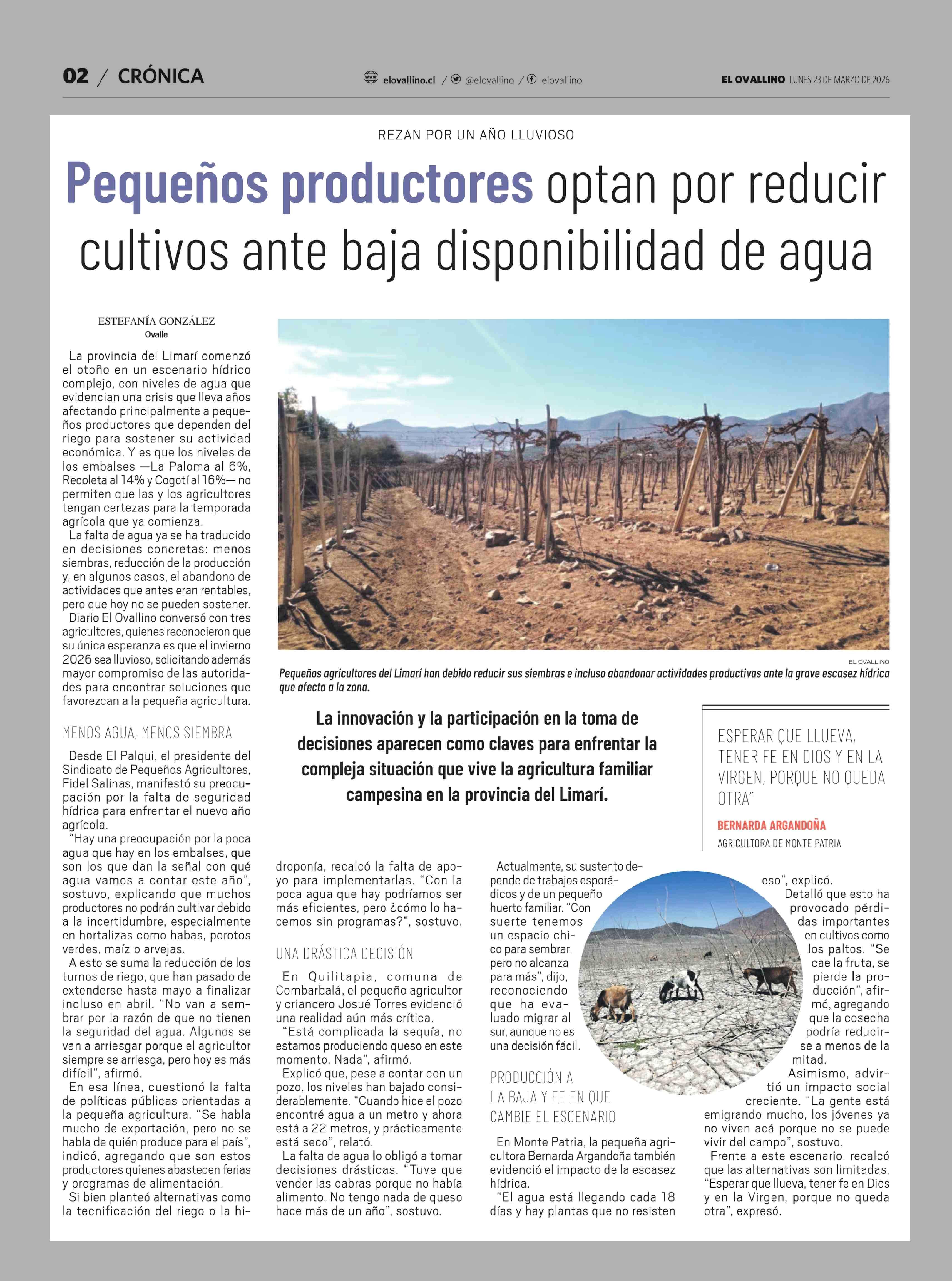 Título: Pequeños productores optan por reducir cultivos ante baja disponibilidad de agua