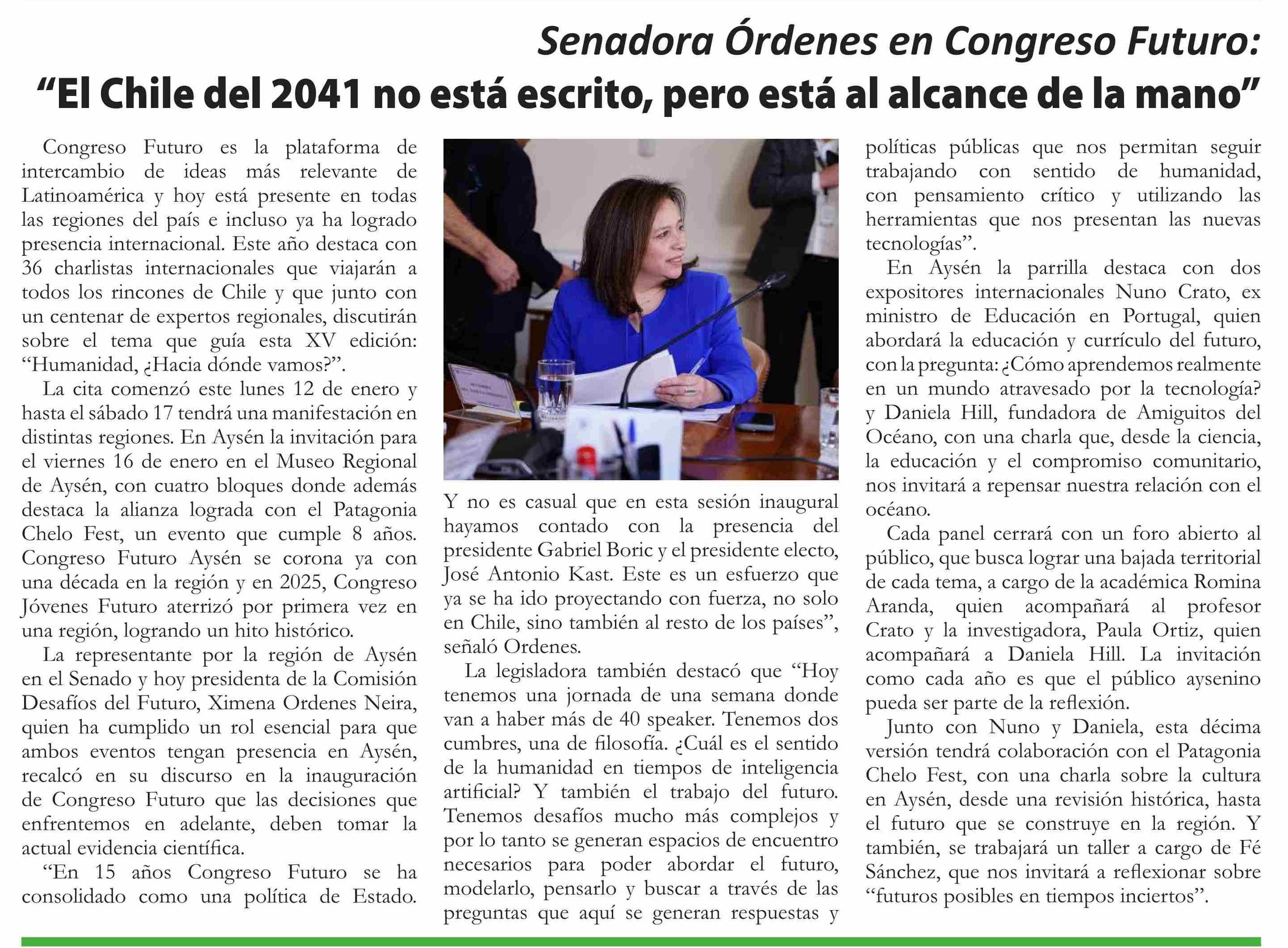 Título: Senadora Órdenes en Congreso Futuro: "El Chile del 2041 no está escrito, pero está al alcance de la mano"