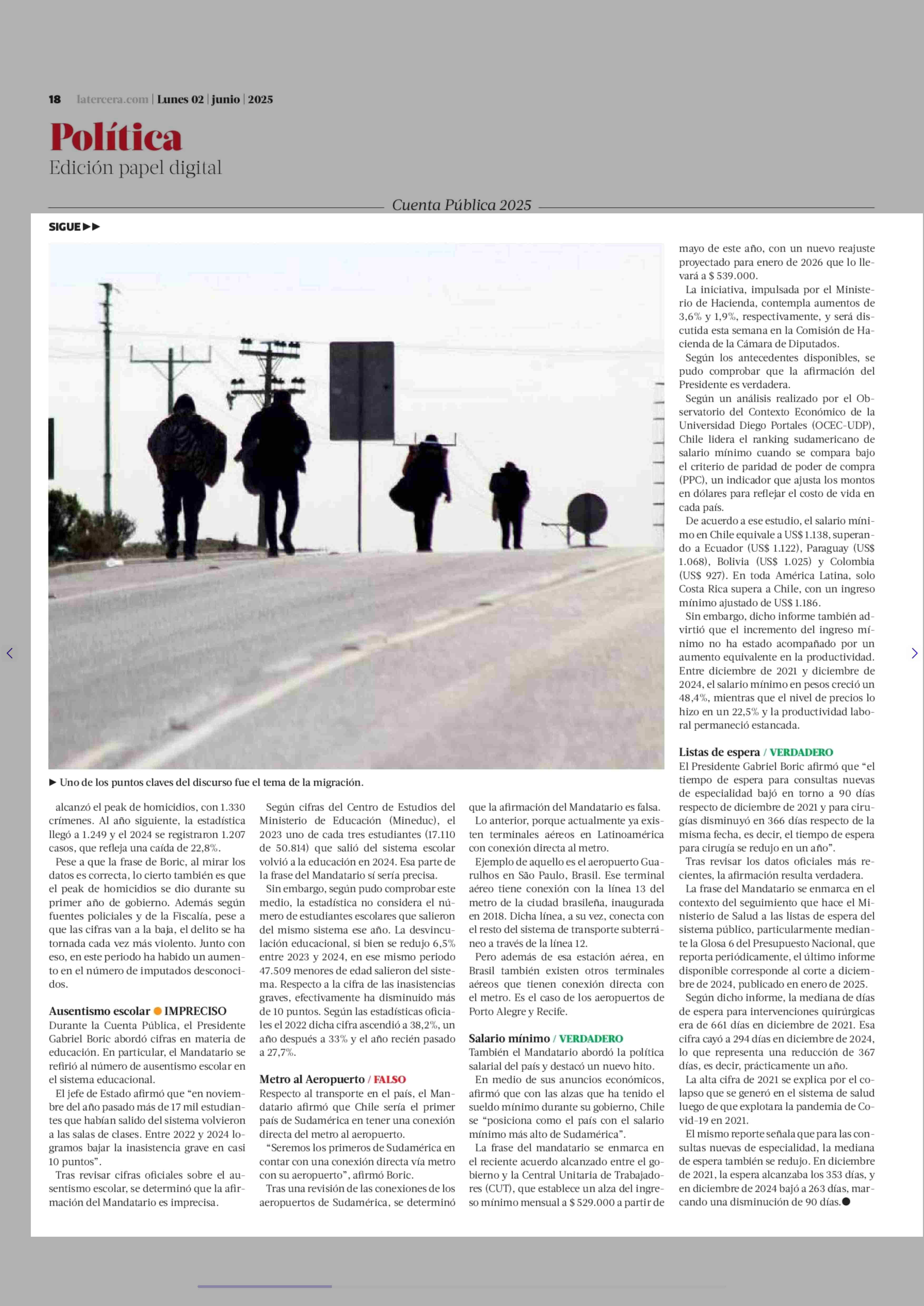 Fact Checking a la Cuenta Pública del Presidente Gabriel Boric 02-06-2025 La Tercera |