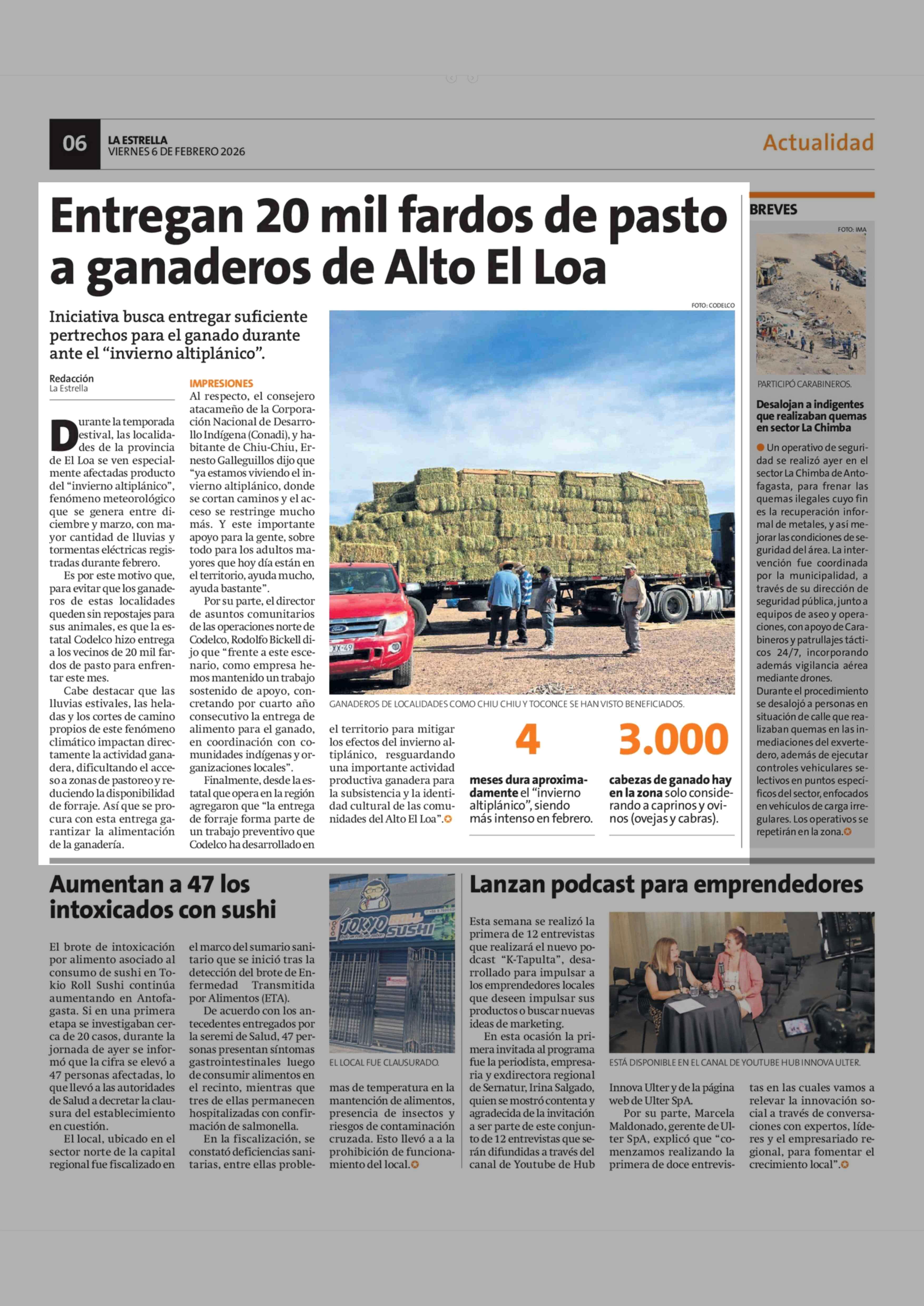 Entregan 20 mil fardos de pasto a ganaderos de Alto El Loa 06-02-2026 La Estrella de Antofagasta |