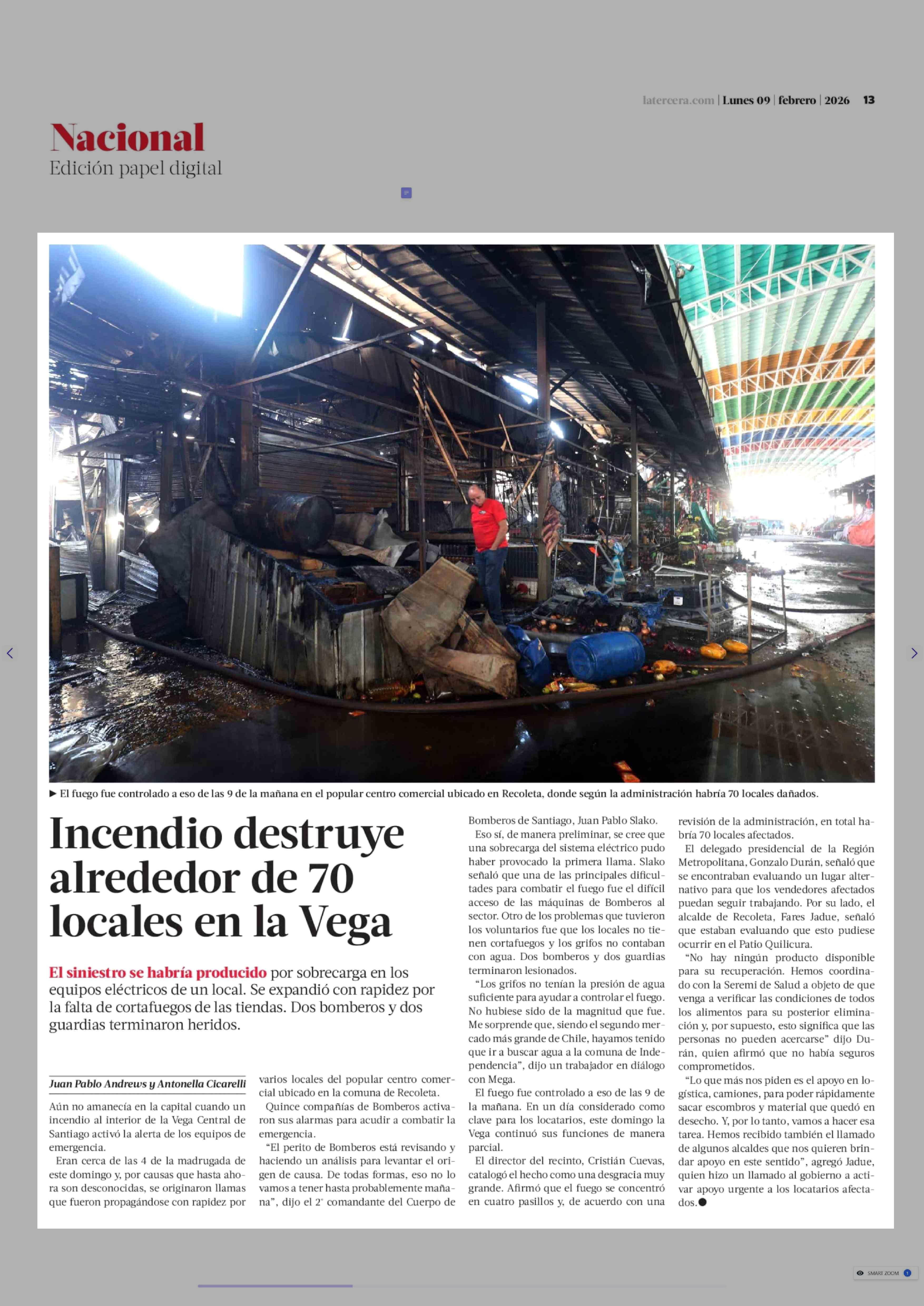 Incendio destruye alrededor de 70 locales en la Vega 09-02-2026 La Tercera |
