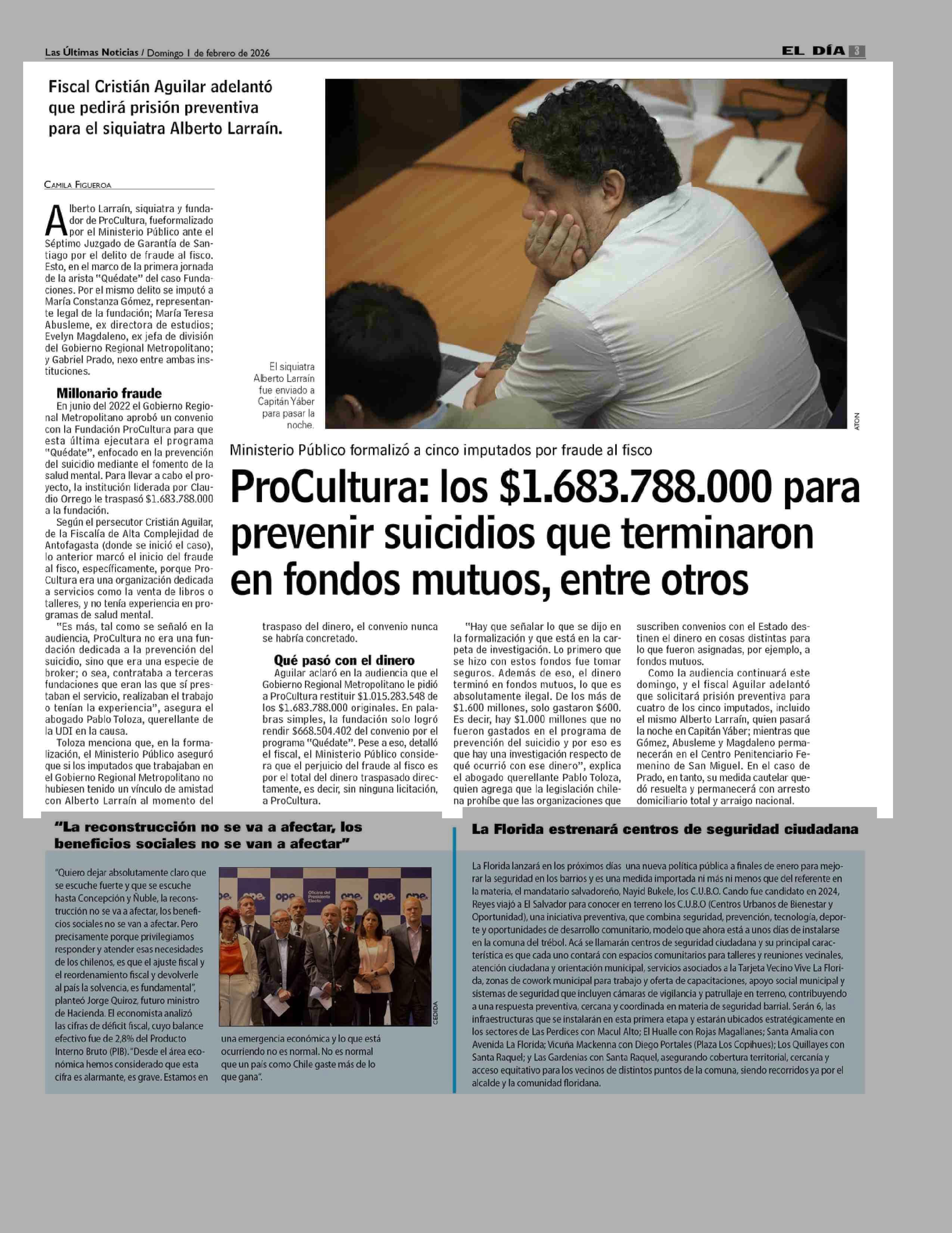 ProCultura: los $1.683.788.000 para prevenir suicidios que terminaron en fondos mutuos, entre otros 01-02-2026 Las Últimas Noticias |