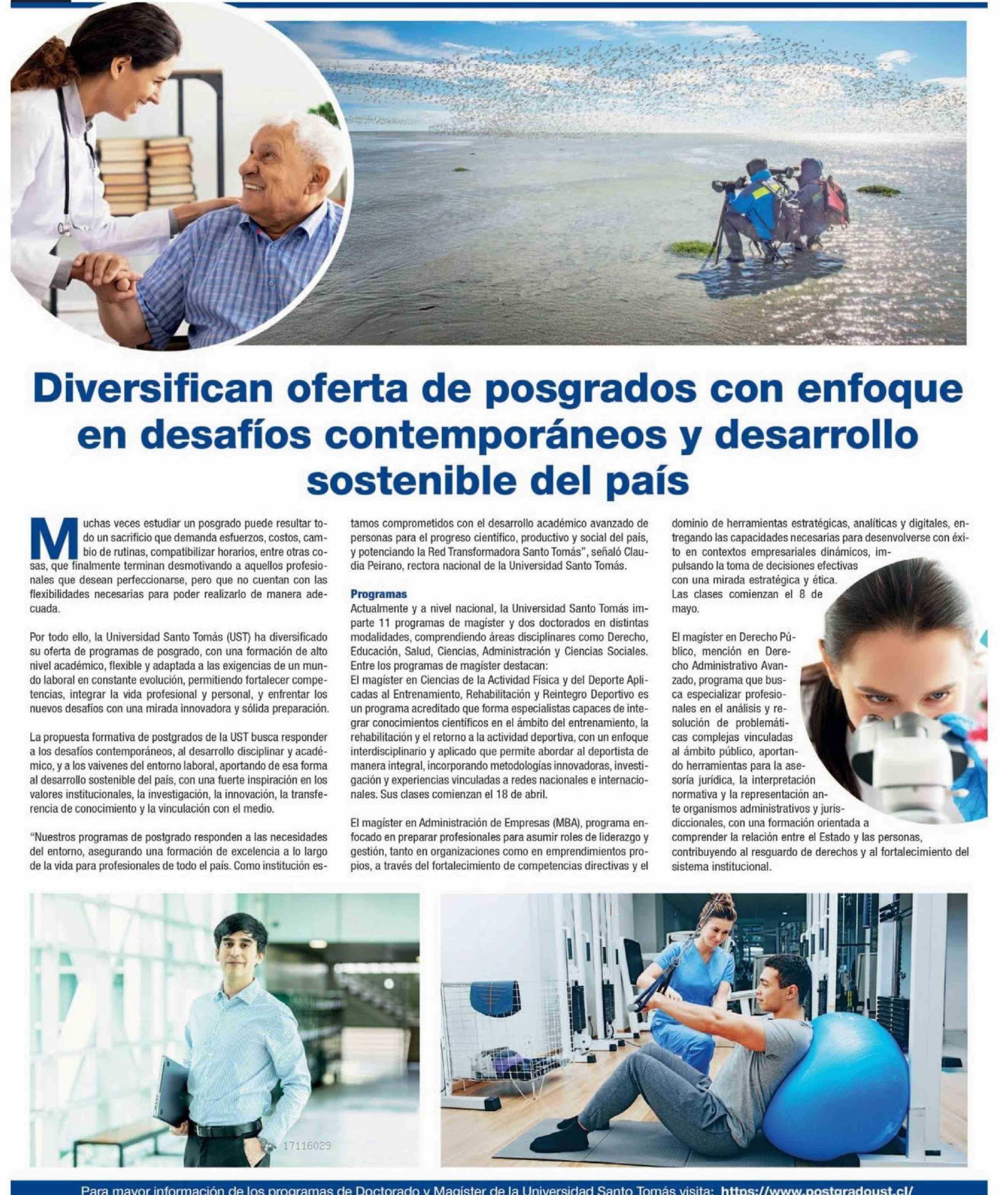 Diversifican oferta de posgrados con enfoque en desafíos contemporáneos y desarrollo sostenible del país 16-04-2026 La Estrella de Antofagasta |