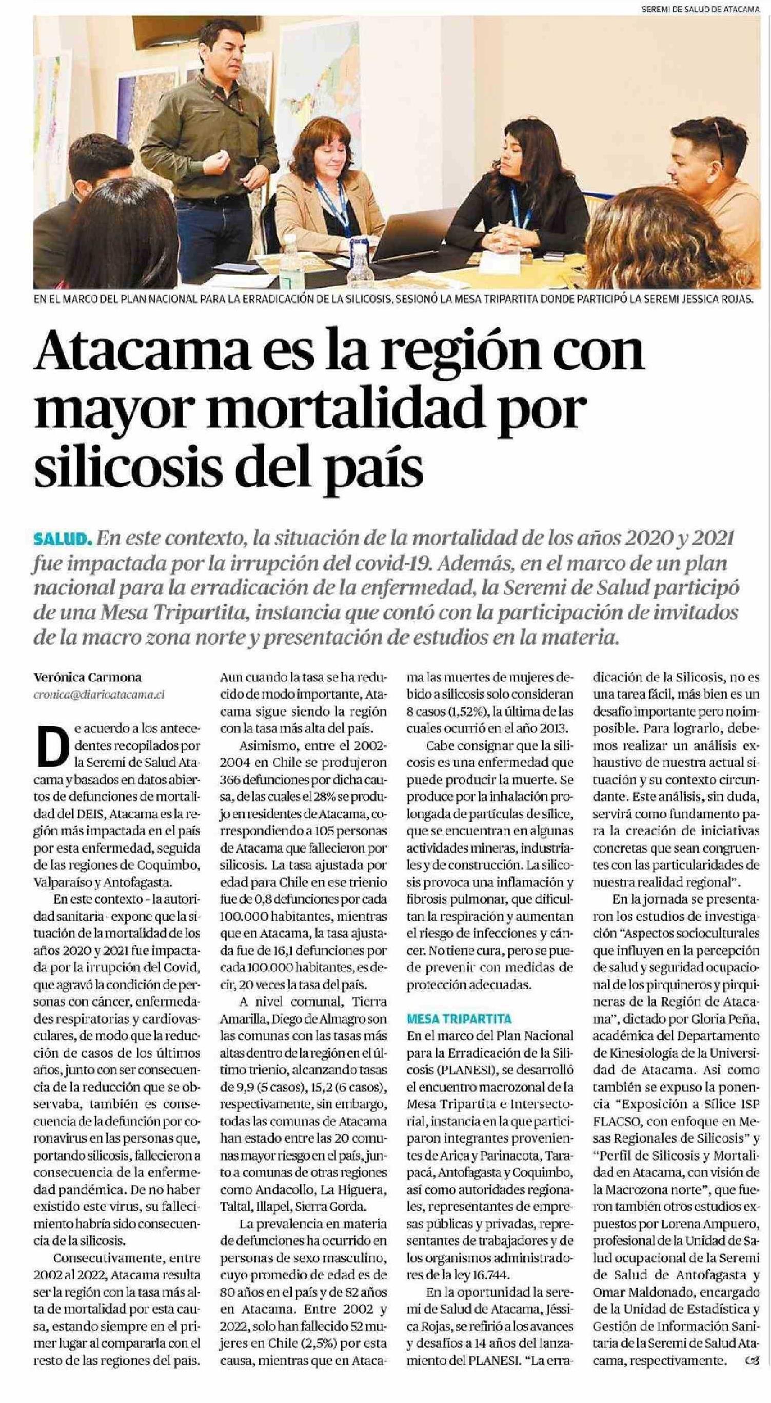 Atacama es la región con mayor mortalidad por silicosis del país 15-08-2023 El Diario de Atacama |