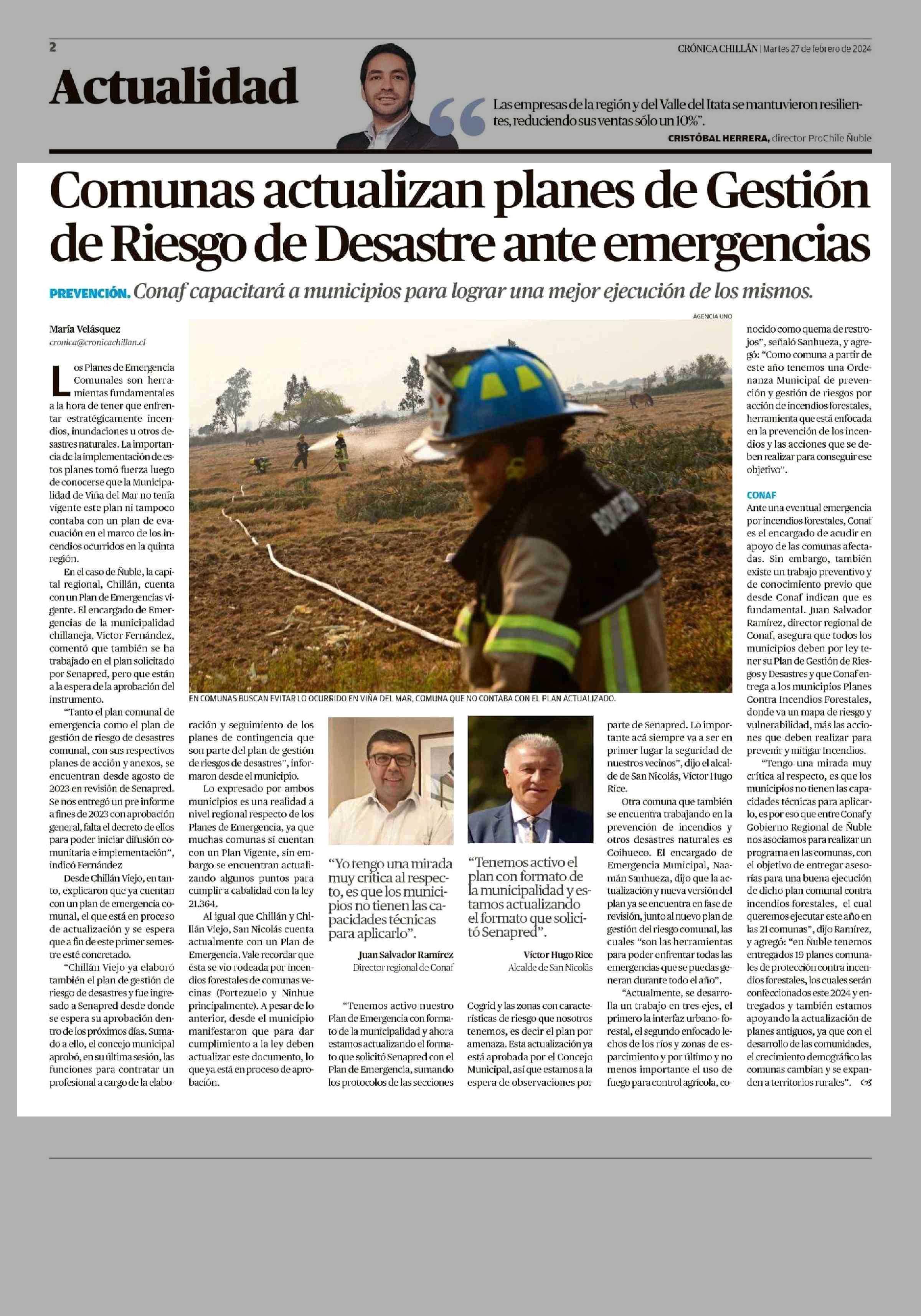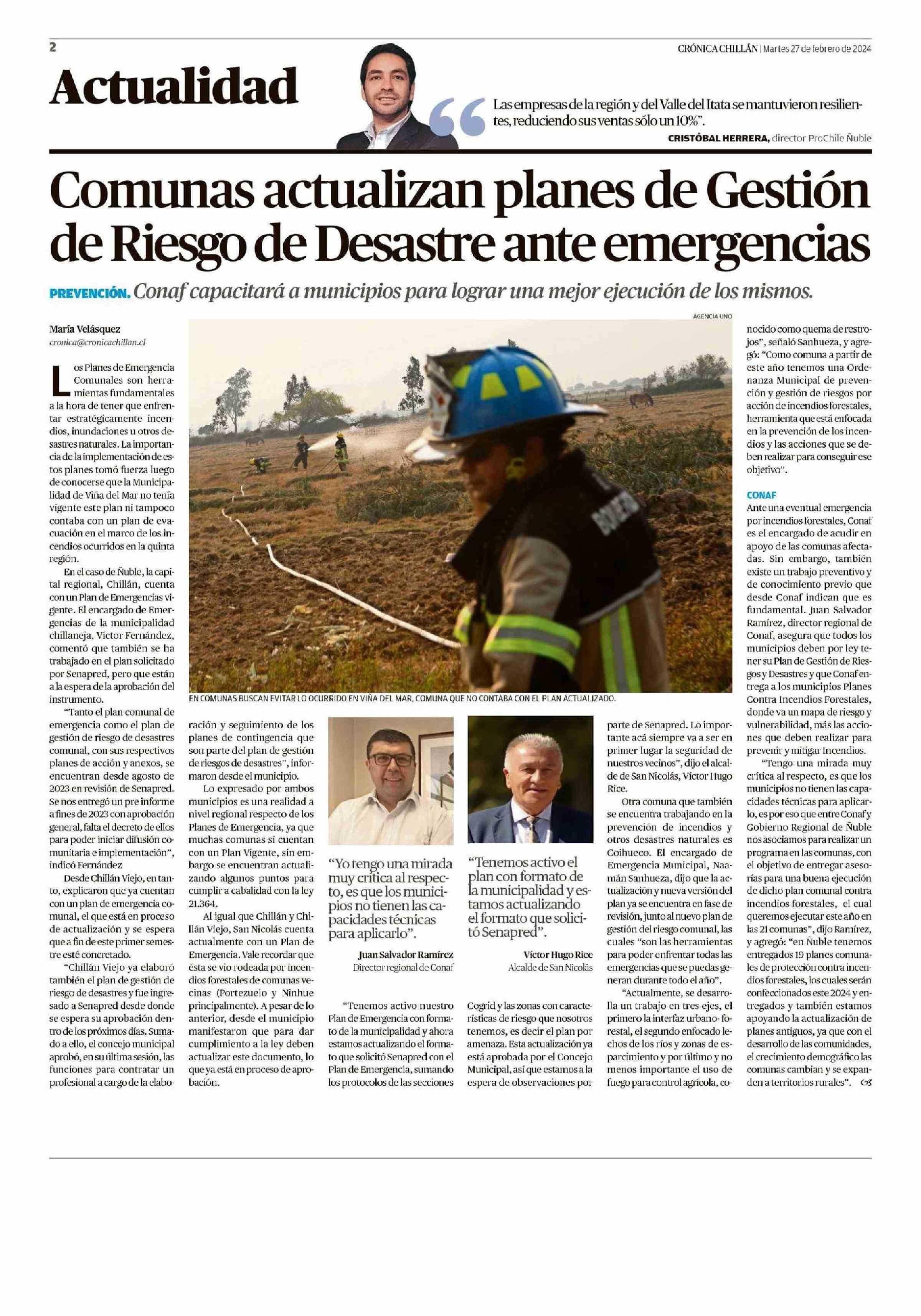 Comunas actualizan planes de Gestión de Riesgo de Desastre ante emergencias 27-02-2024 Crónica de Chillán |