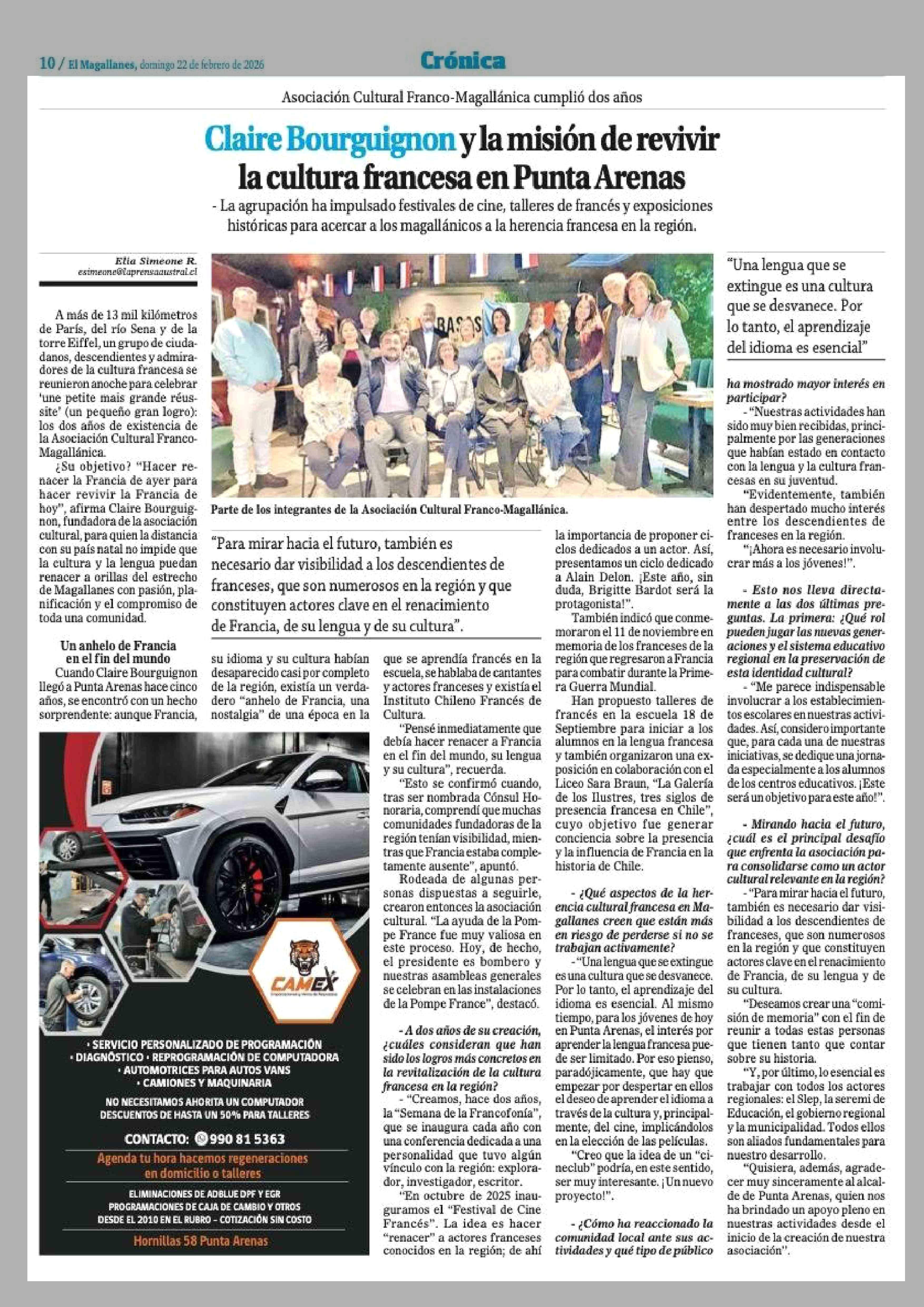 Claire Bourguignon y la misión de revivir la cultura francesa en Punta Arenas 22-02-2026 El Magallanes |
