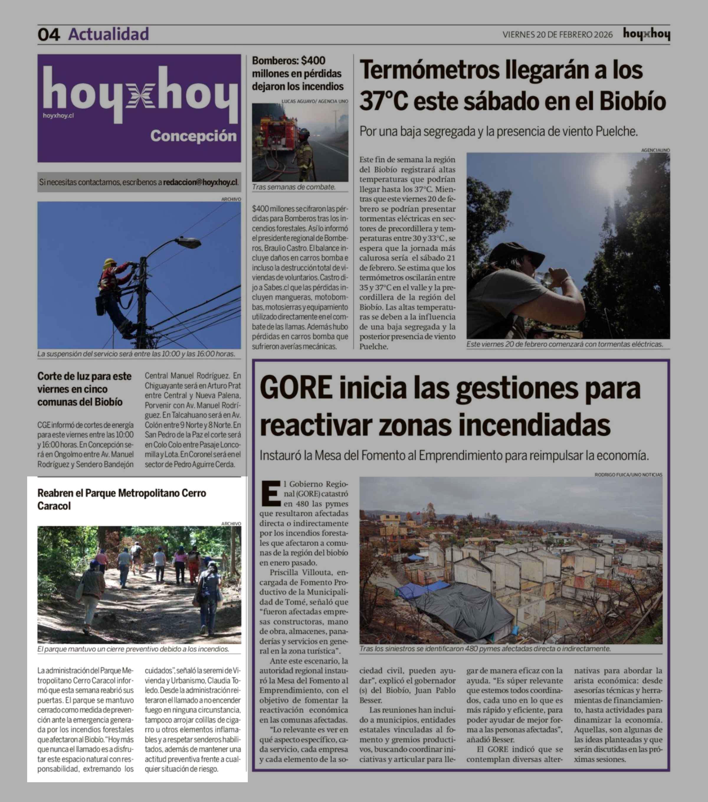 Fecha: 20-02-2026 Sector: Noticia general Región: Región del Bío-Bío