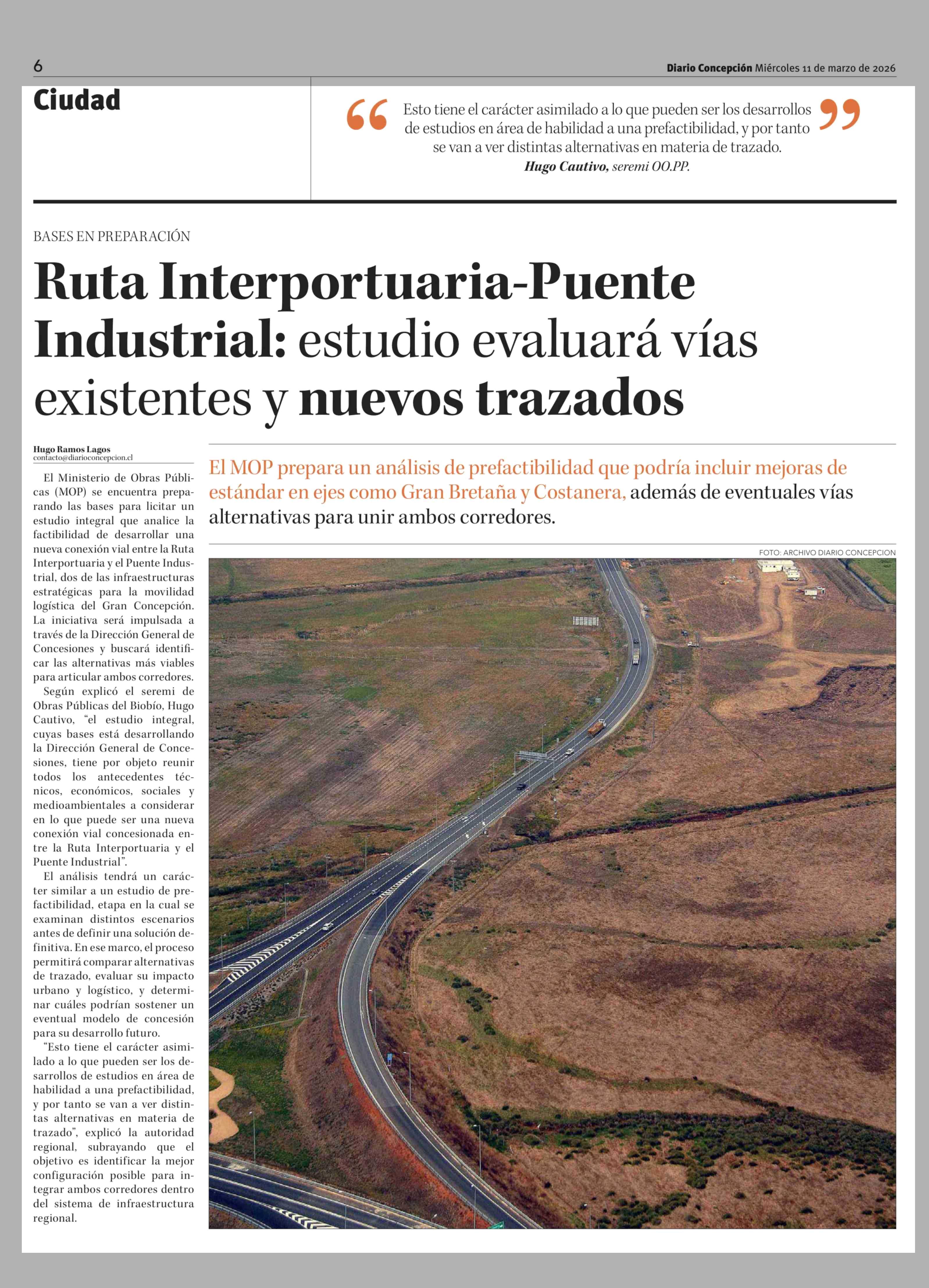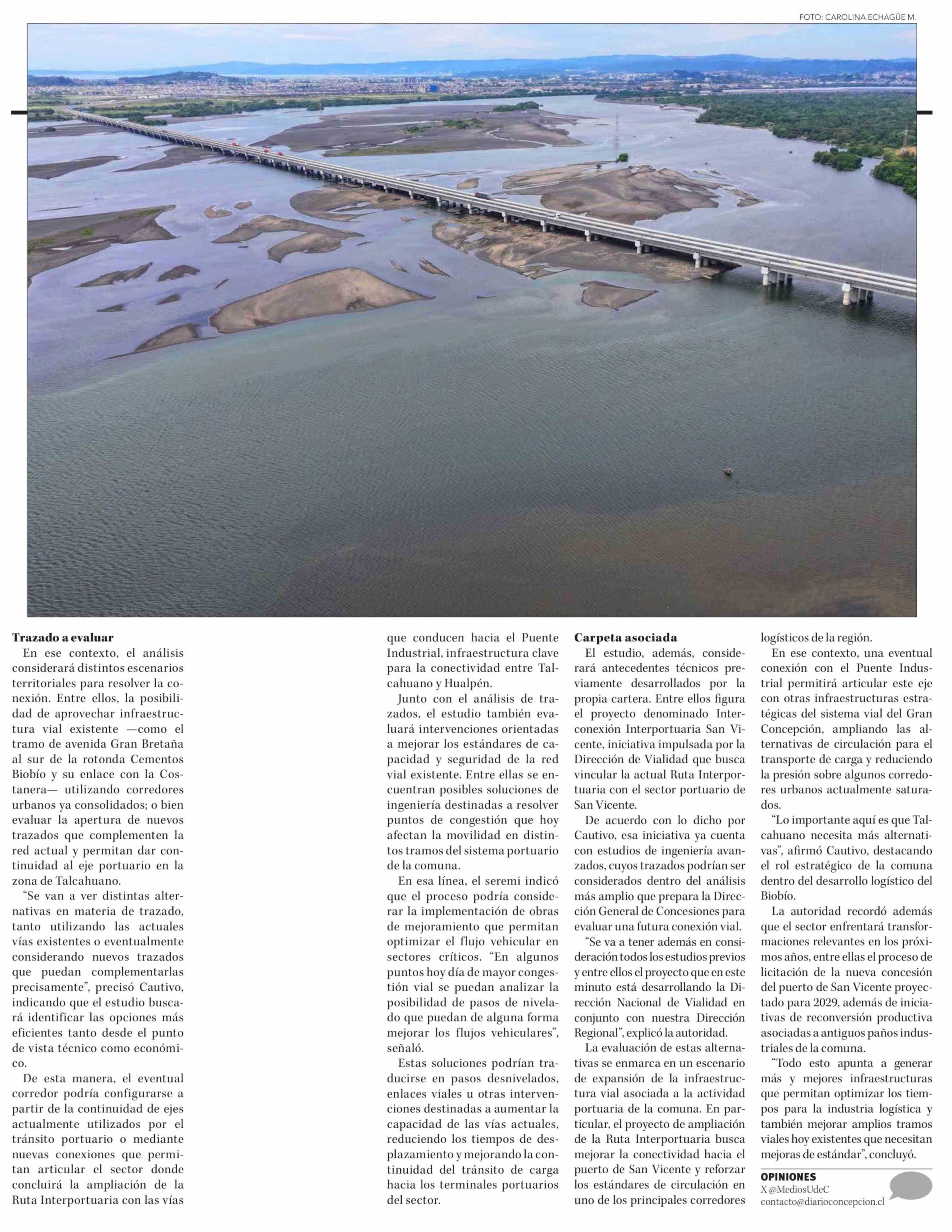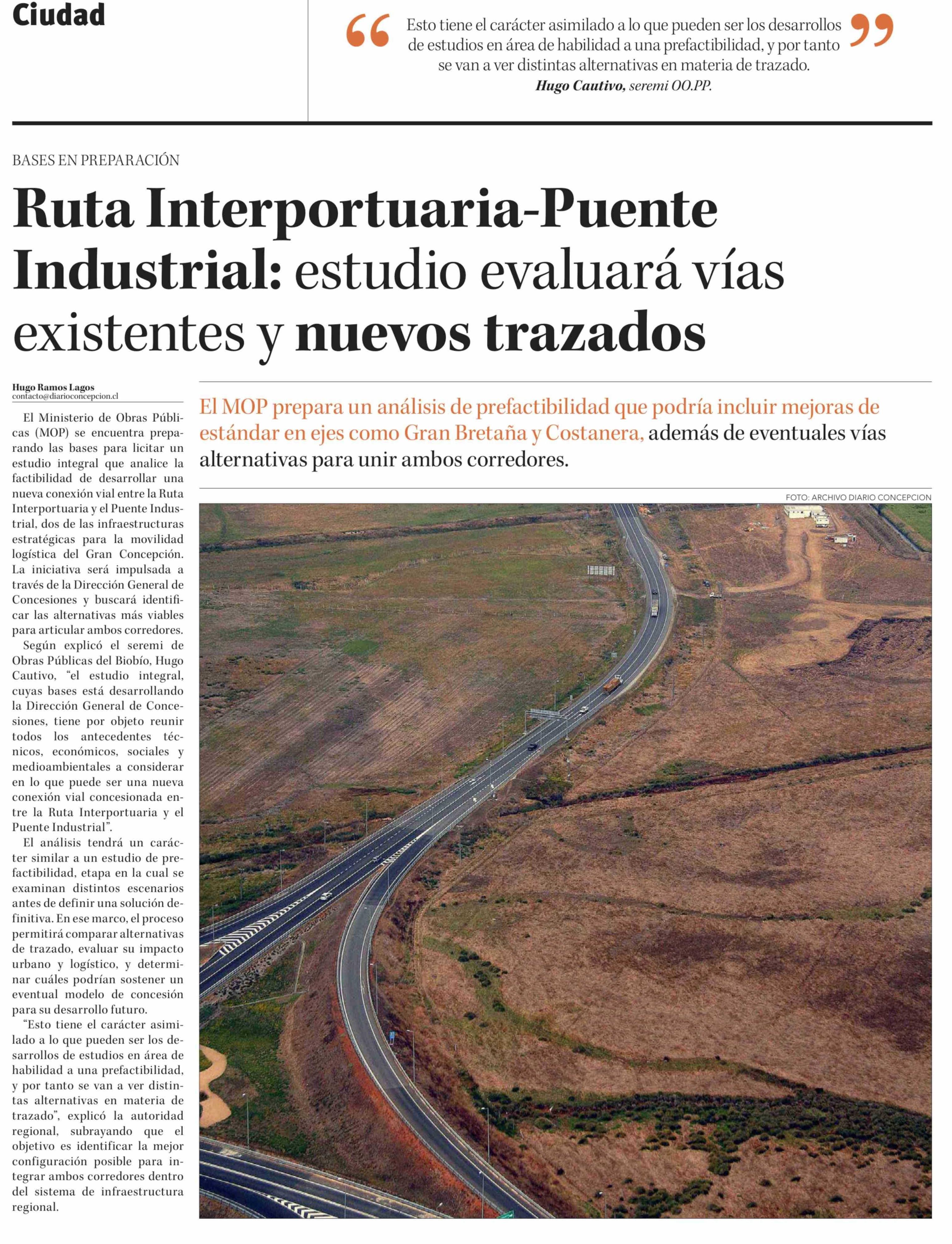 Título: Ruta Interportuaria-Puente Industrial: estudio evaluará vías existentes y nuevos trazados
