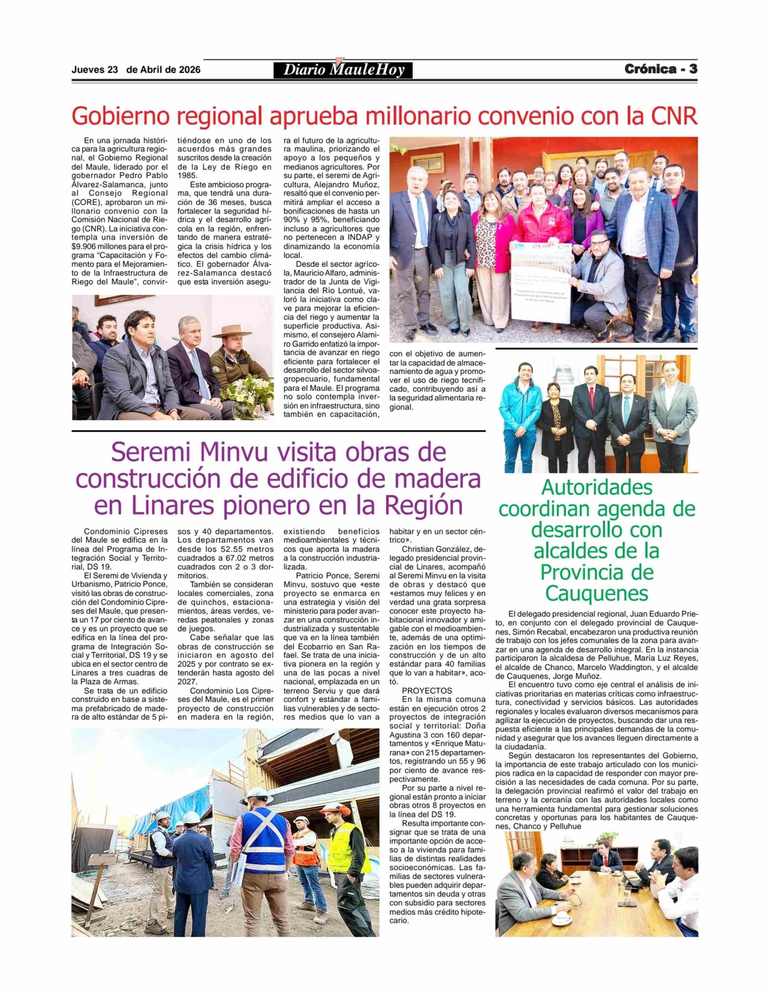 | Fecha: | 23-04-2026 | Sector: | Noticia general | Región: | Región del Maule |