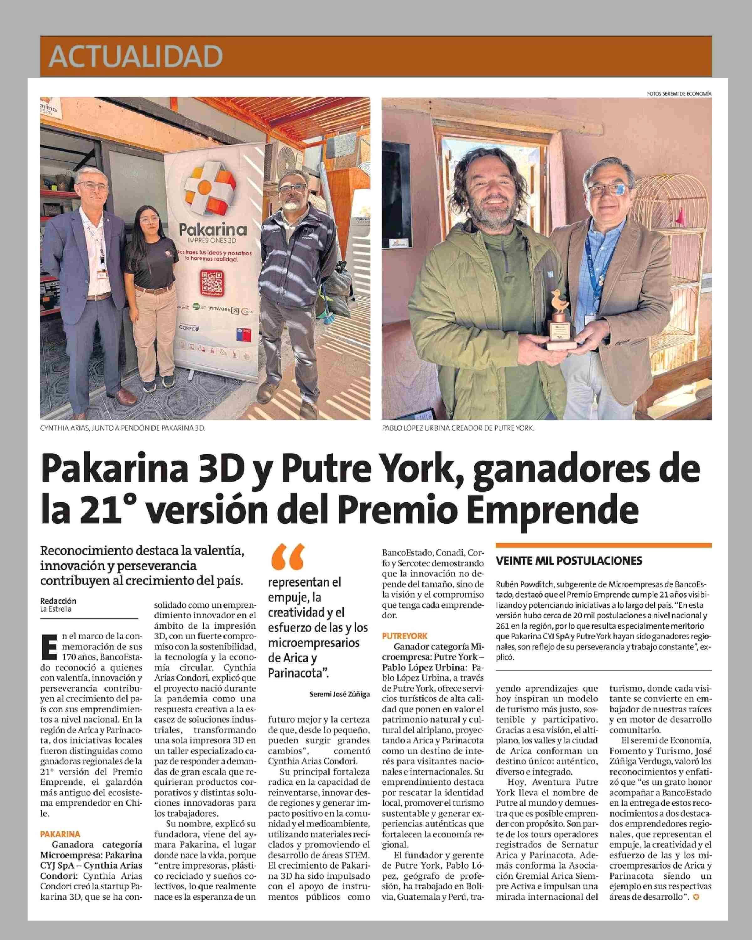 Título: Pakarina 3D y Putre York, ganadores de la 21° versión del Premio Emprende
