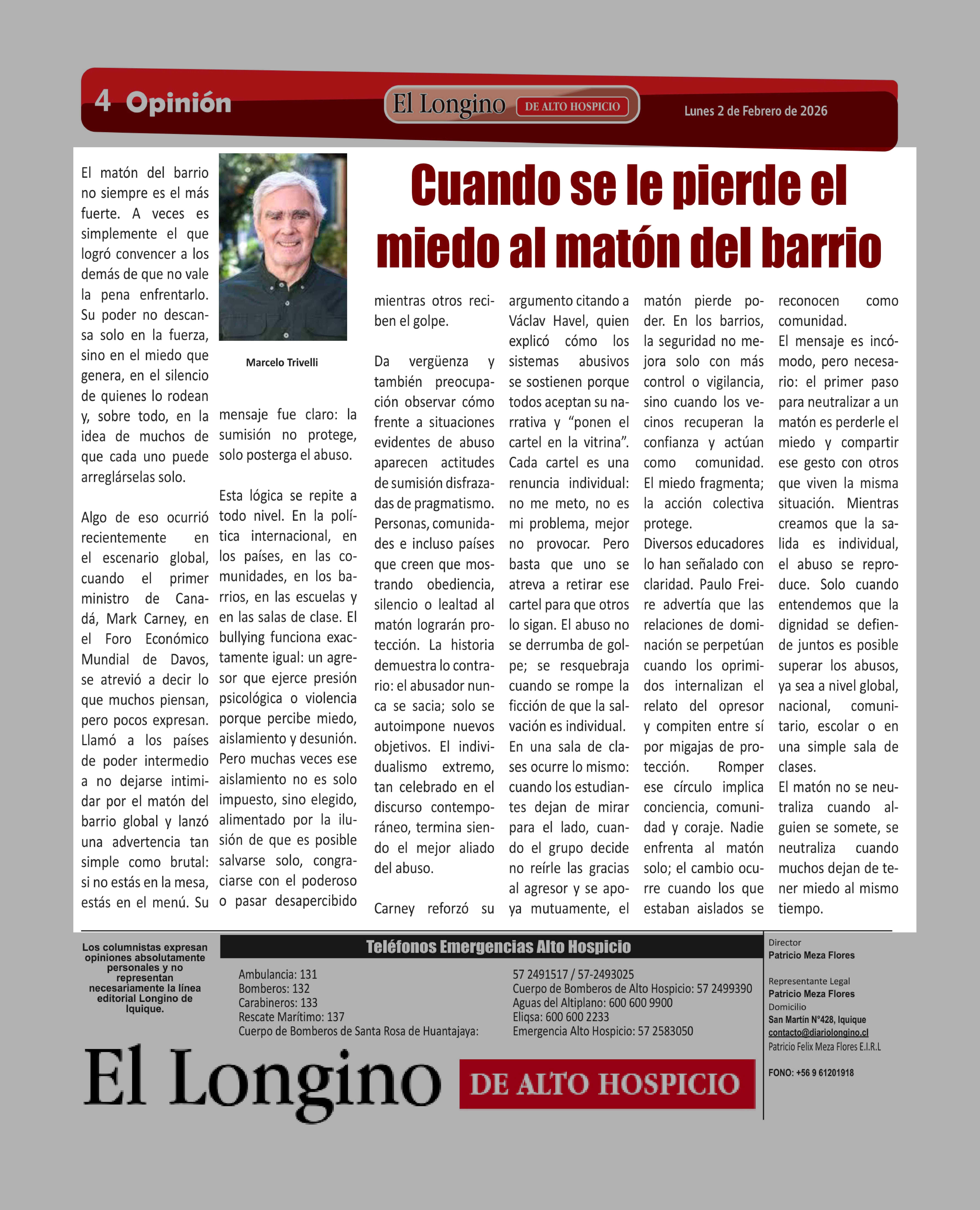 | Fecha: | 02-02-2026 | Sector: | Columnas de Opinión | Región: | Región de Tarapacá |